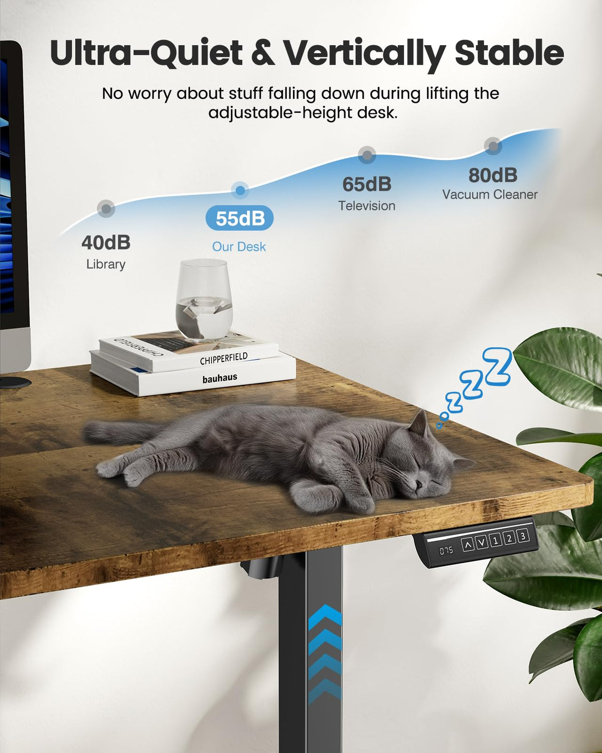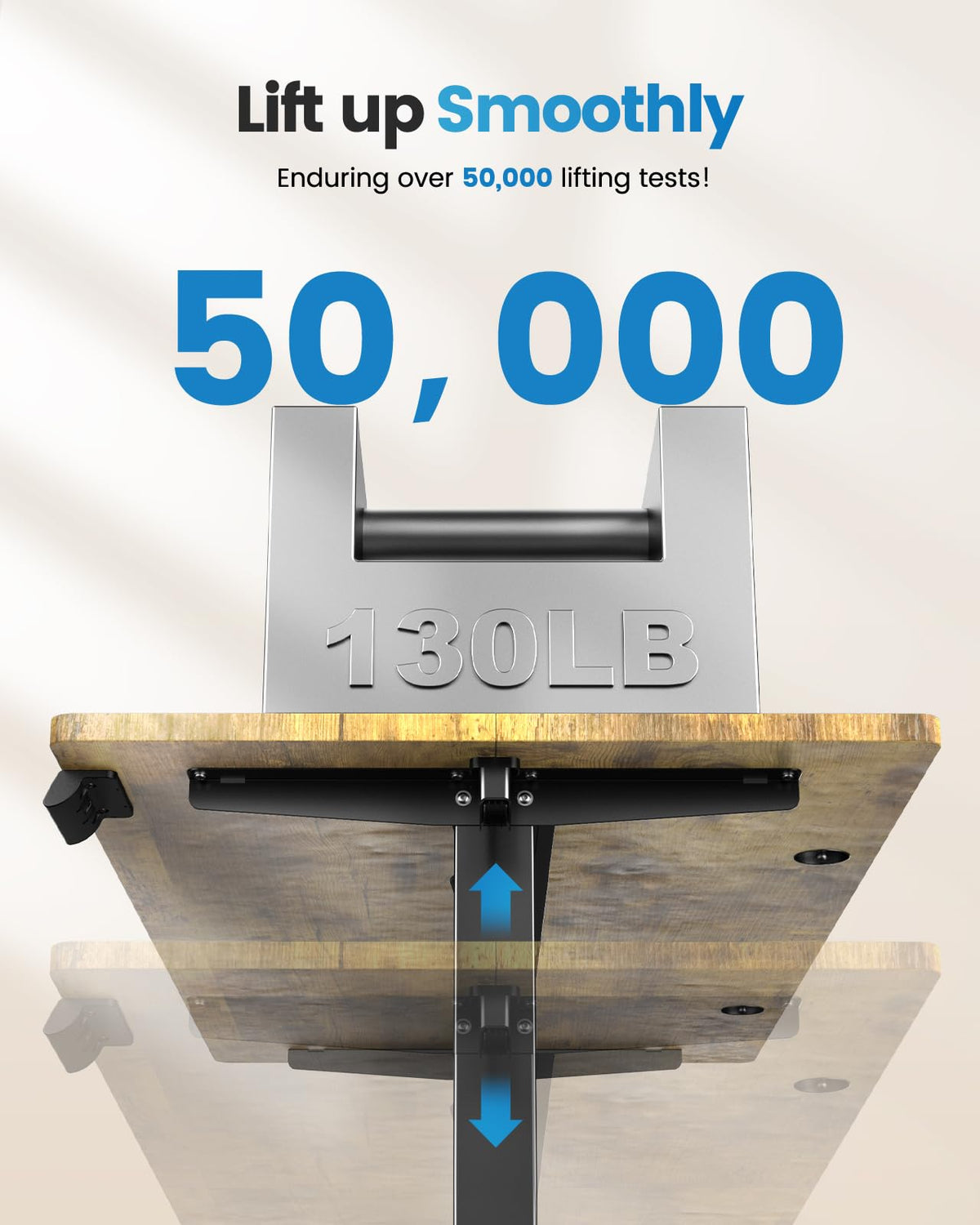 • Strong Desk Frame Support: This 48" electric height adjustable desk boasts a high-quality industrial-grade steel frame and aerospace-grade lift column connectors, which remain stable and safe even after 100,000 cycles. The wear-resistant particle board desktop ensures longevity, while the desk's ability to support up to 131 pounds supports your ideal workspace setup