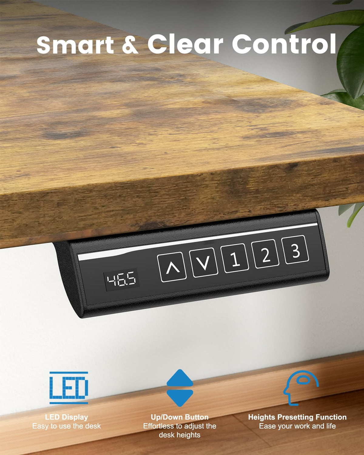• Memory Electric Lift: The stand up desk features a one-touch height adjustment and an LED display for clear visibility of height settings. It offers 3 memory presets to save different height preferences, allowing you to easily adjust the sit stand desk height according to your stature and work requirements