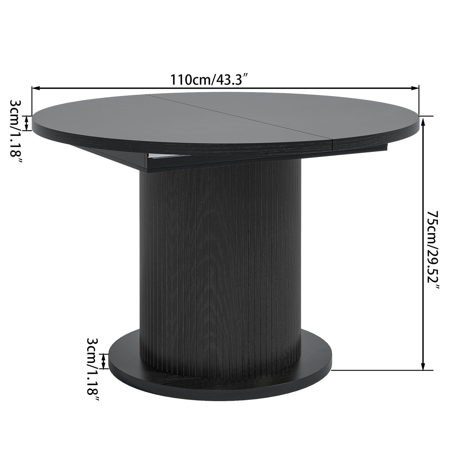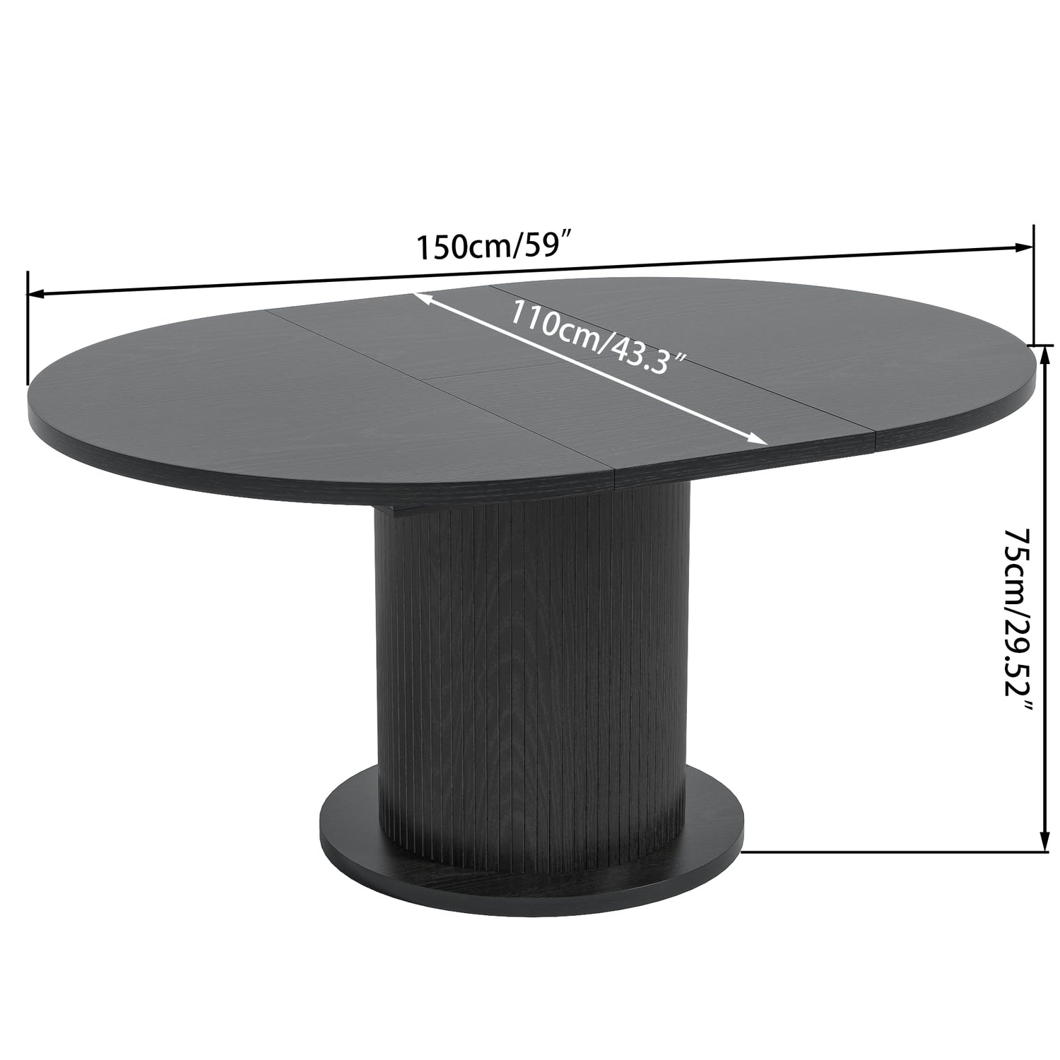 43.3 inch 59 inch Adjustable Size Round Conference Table for 4-6 People, Unique Design Modern Meeting Room Table, with Wood Strip Base (Black)