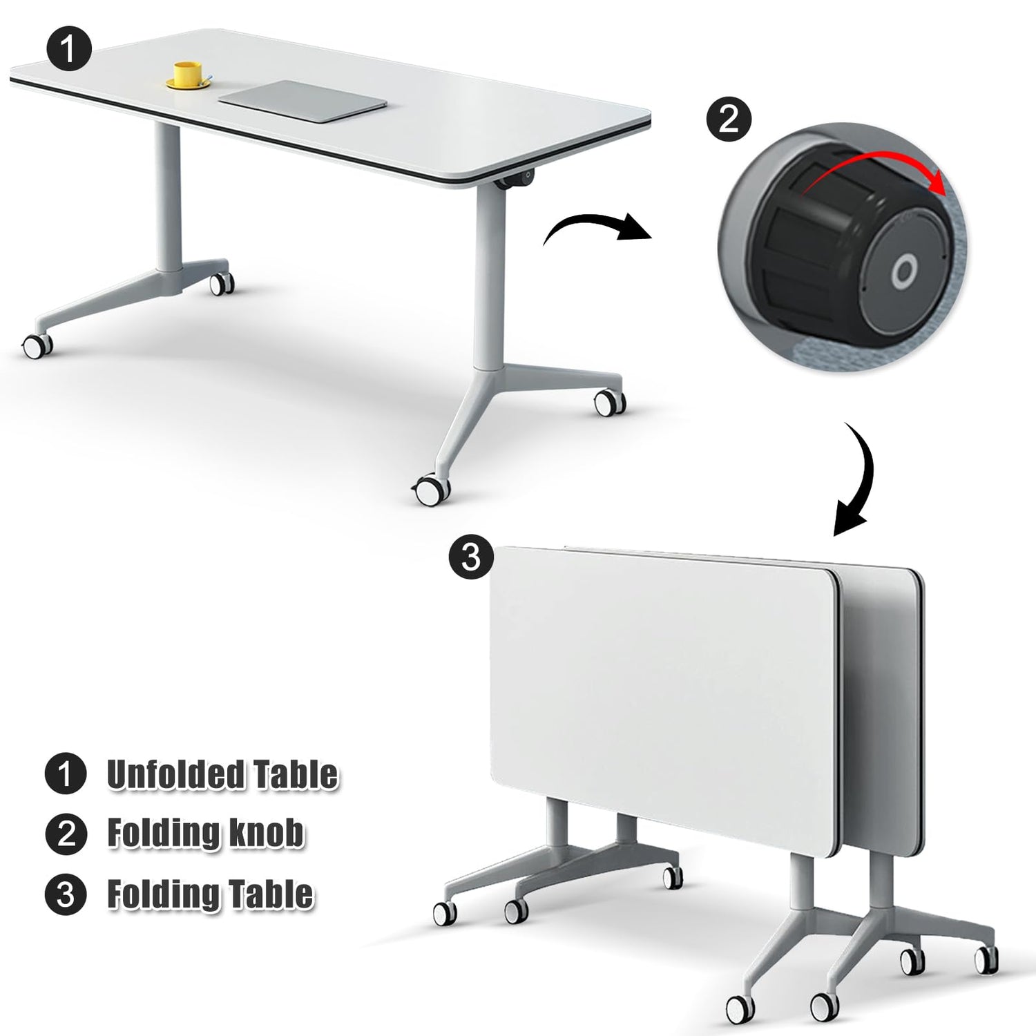 • 【Foldable Office Conference Table】Foldable clamshell design, you can switch the desktop to a vertical state when you need to make more space. Convenient to store and save space.