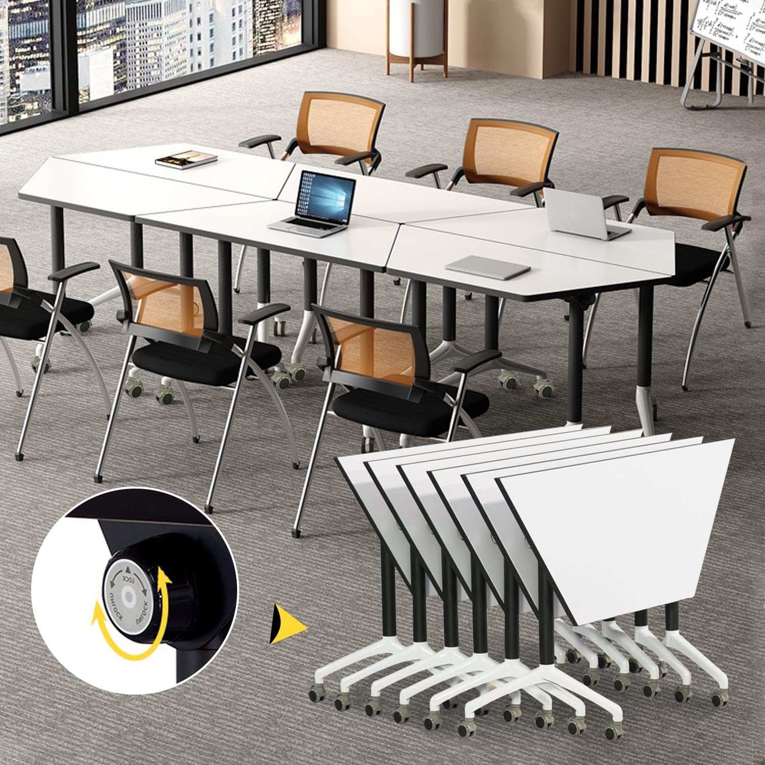 • 【Versatile Functionality】Convenient and space-saving in design, this foldable conference table features a quick-fold feature that quickly converts the tabletop from a flat to an upright position with the swivel buttons on either side of the table. Ideal for conference and training rooms where space is limited. The folding conference room table can also be pieced together into different shapes to suit a variety of occasions.
