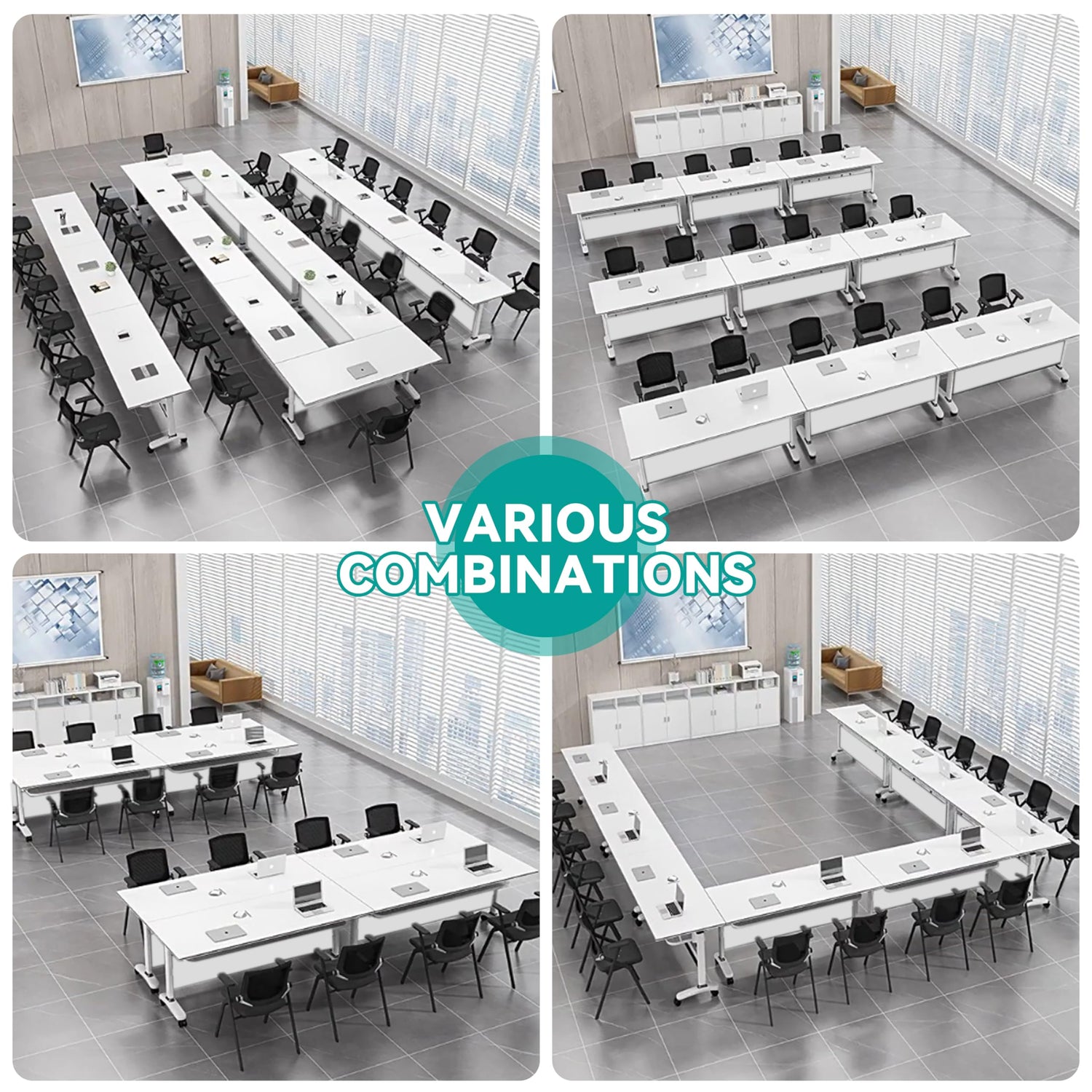 Conference Table, Folding Conference Room Tables With Flip-Top Design, With Caster Rectangular Modular Conference Room Table, for Office Conference Room Training Room 47x20x30in( WxDxH) 6PCS-White