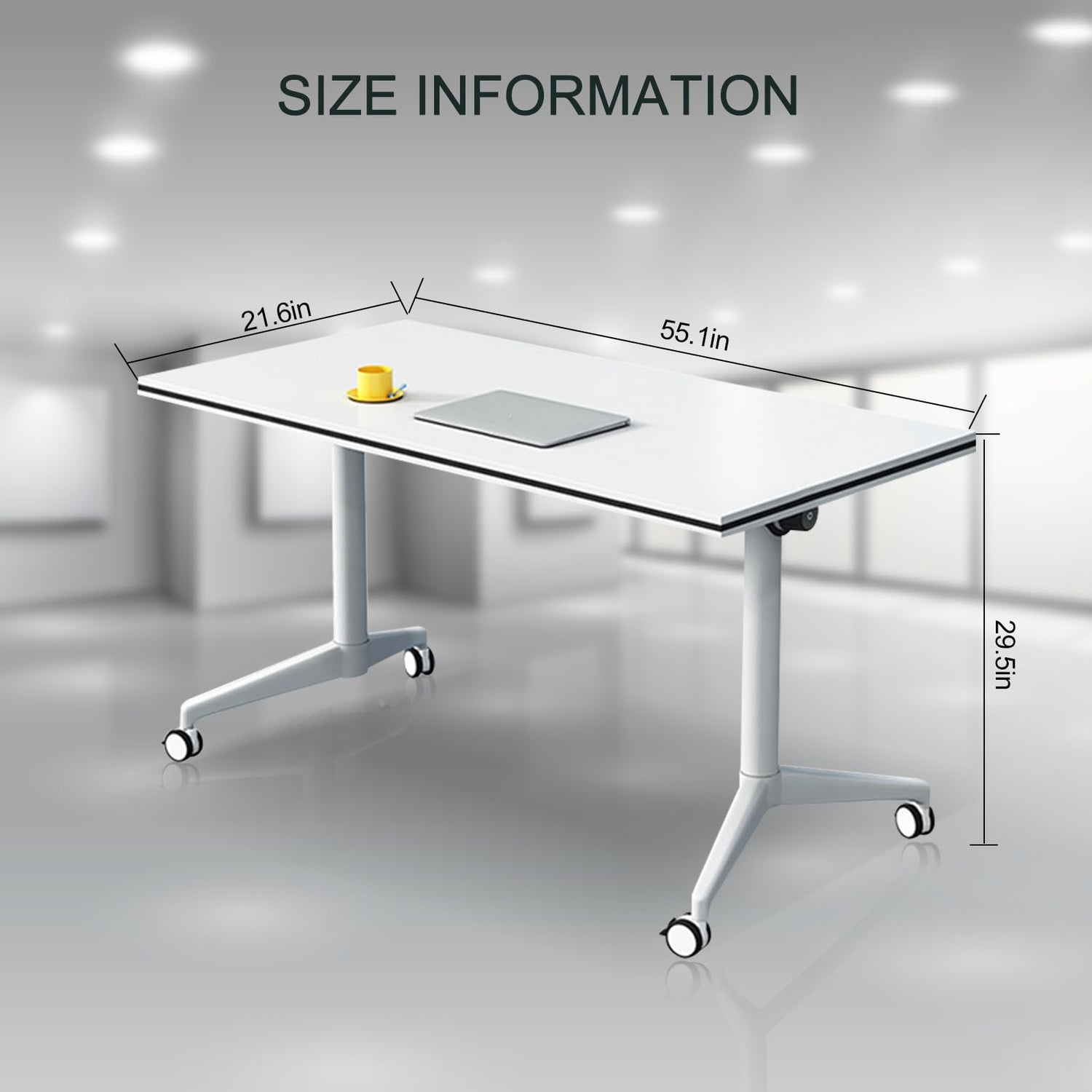 • OFFICE DESK SIZE-The size of the folding Flip Top Mobile Training Table desk: 55 "D x 21.6" W x 29.5 "H. conference table is atmospheric and simple, with a longer desktop and ergonomic height, making it the best choice for your office