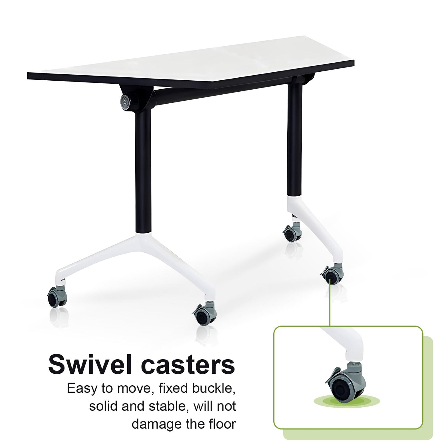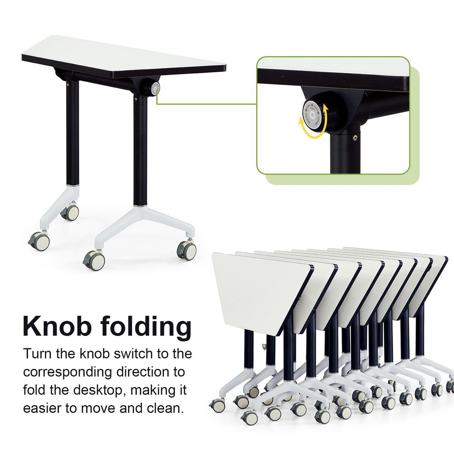 CUAOCEZ Conference Room Table Foldable Flip Top Mobile Training Table,combinable trapezoidal Conference Table Computer Desk,Metal Frame,with Modesty and Lockable Wheels Seminar Training Table (8PCS)