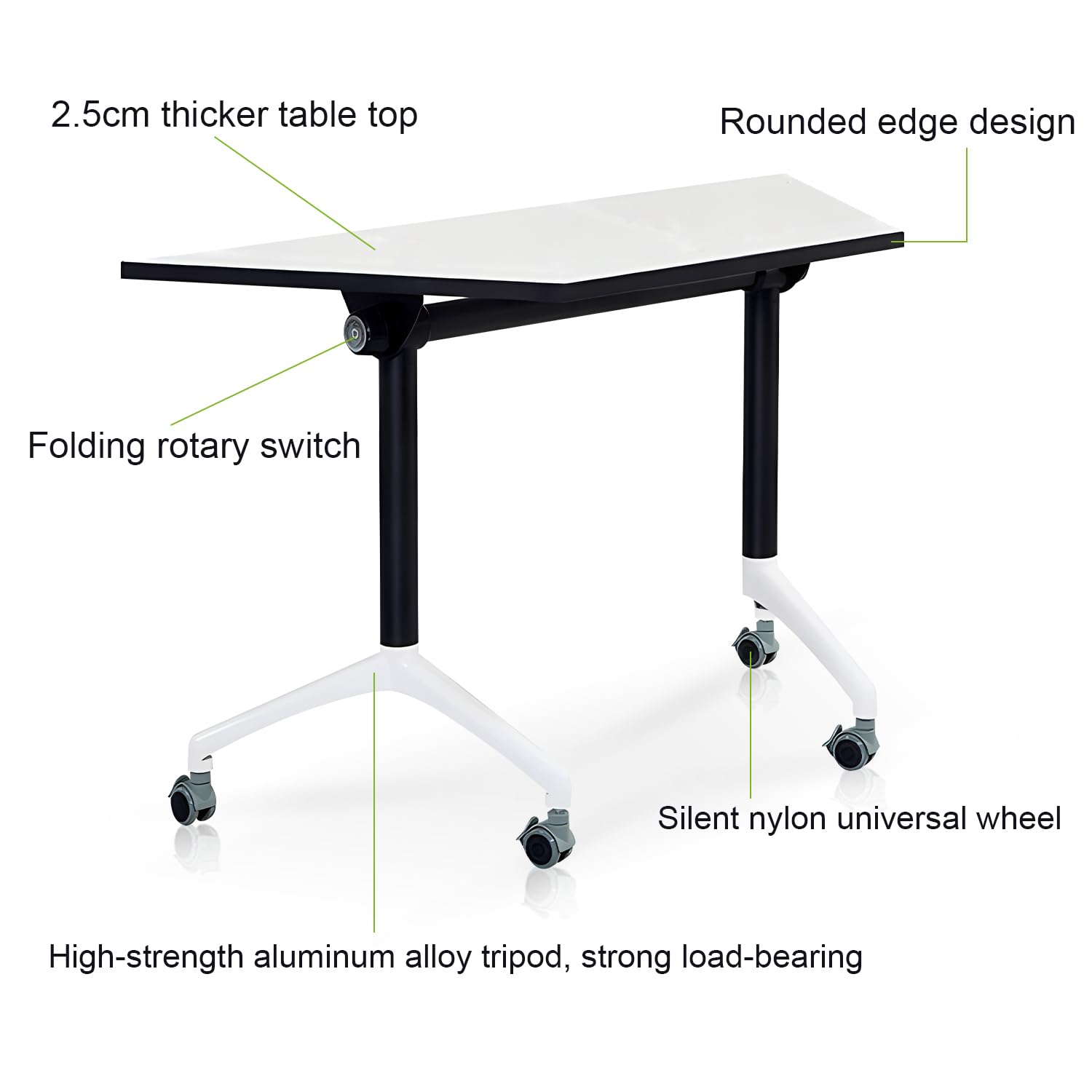 - 【Mobile Boardroom Table】Sturdy aluminum alloy base of the Mobile Meeting Table equipped with 4 silent swivel wheels makes it simple to move the Flip top mobile training table from one location to the next , the casters can quickly move 360° to any corner, which is flexible and convenient, saving effort and worry. locks on the wheels help keep the office conference table in place while parked and in use.