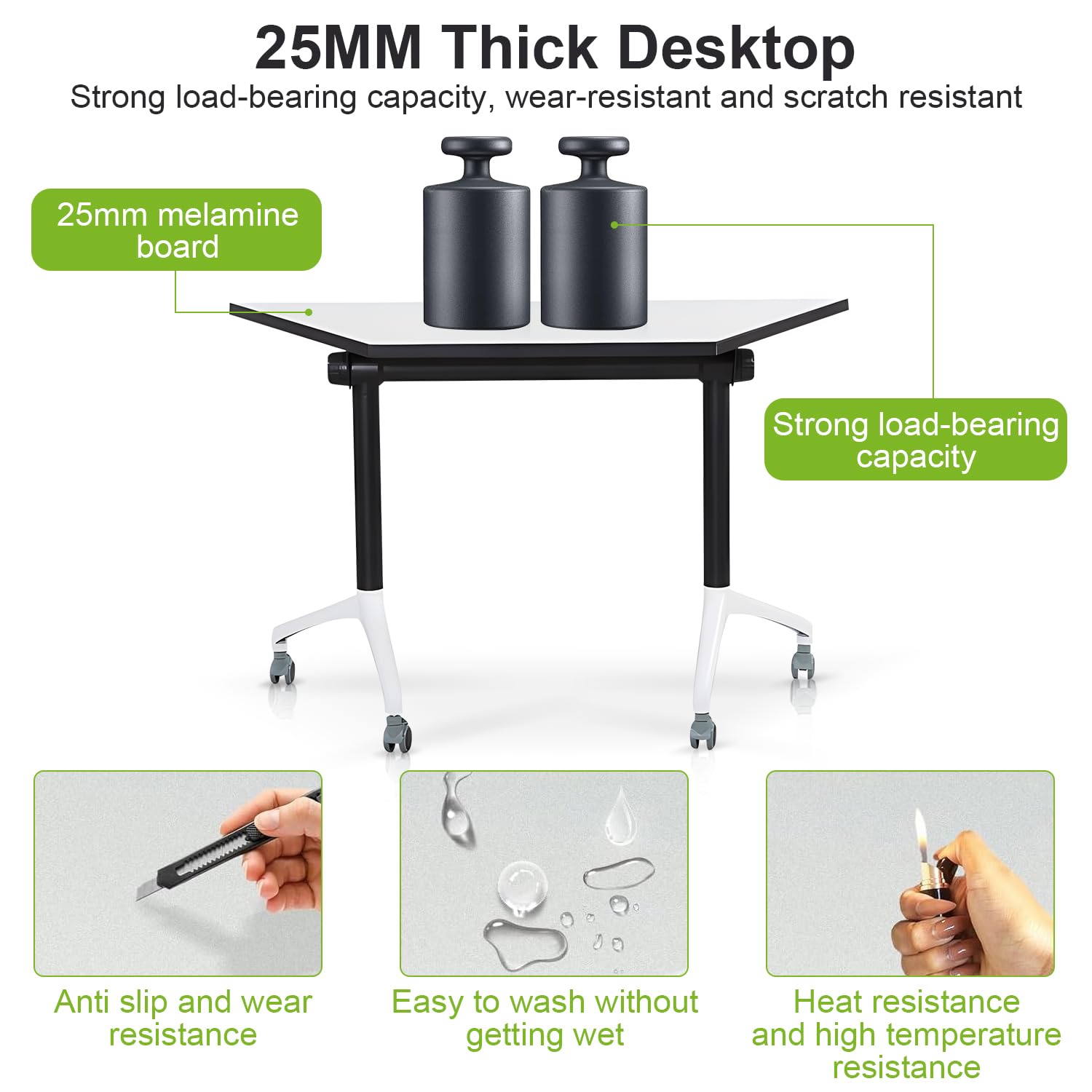 - 【Foldable Conference Table】Compared with traditional conference tables, our conference tables is foldable adopts a foldable design, which allows the folding tables to be nested together to save folding and storage space; the rotating buttons on both sides of the folding table can quickly transform the table top from a flat state to a vertical state, making it easier to store when not in use, more space saving