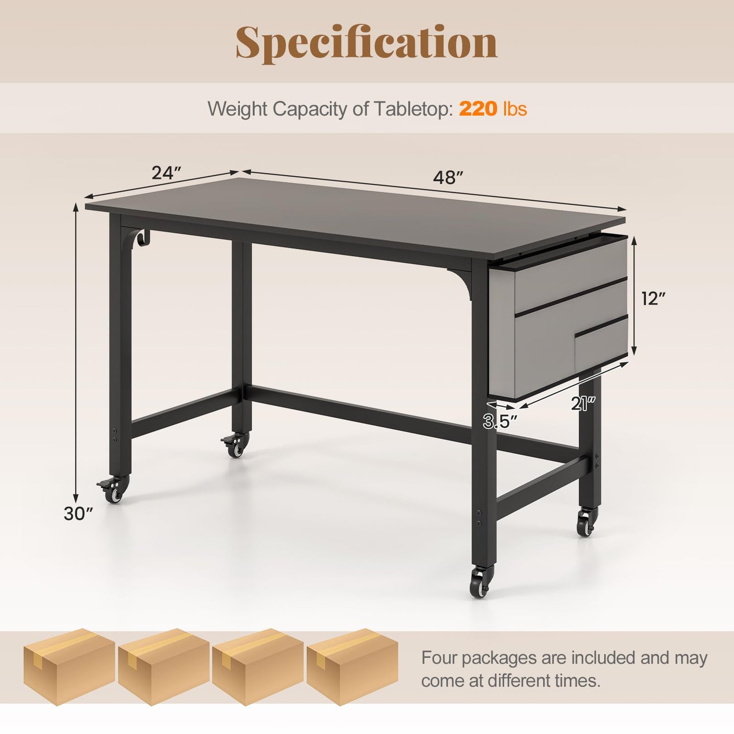 • [Easy Movement with Lockable Design]: The 4 universal wheels of our home office table allow for smooth movement! They can work on different floors such as tile, hardwood floor and carpet. Additionally, two lockable wheels are included so that you can easily secure this desk at will.
