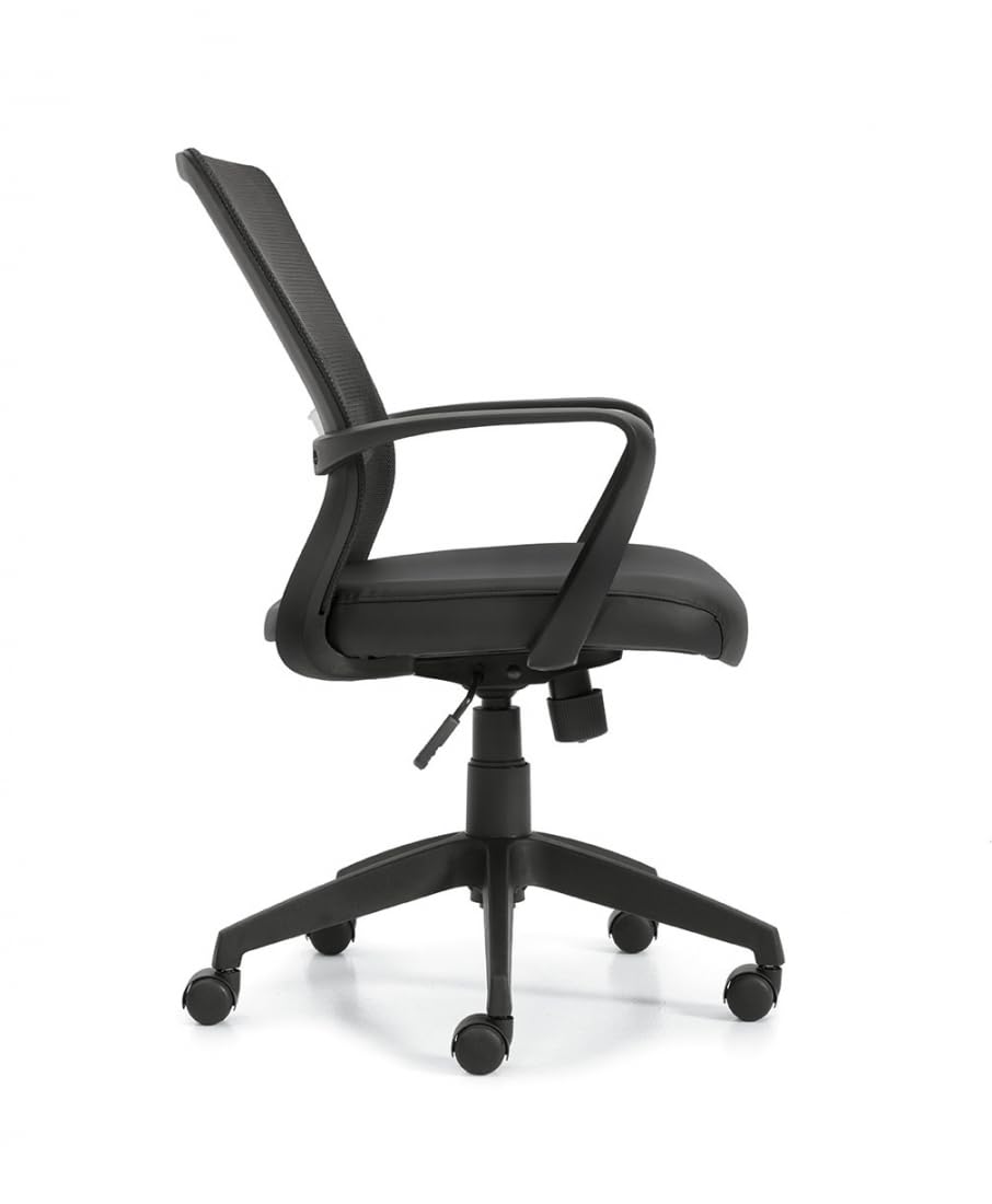 - Chair: Black mesh back with Luxhide seat | Pneumatic seat height adjustment (18"- 21") and Height fixed arms