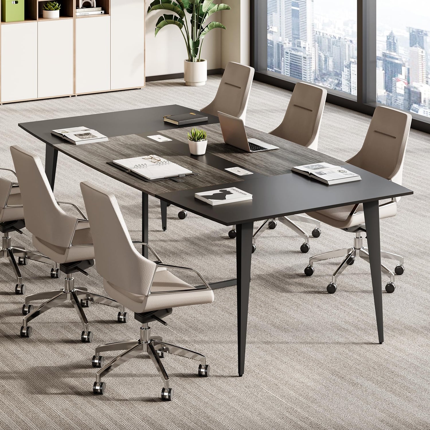 • 【Durable Craftsmanship】Our conference table combines a laminated boat panel with a sturdy metal frame which ensures durability and longevity. The laminate finish is also scratch and stain-resistant, ensuring your table maintains its professional look for longer, even under regular office use.