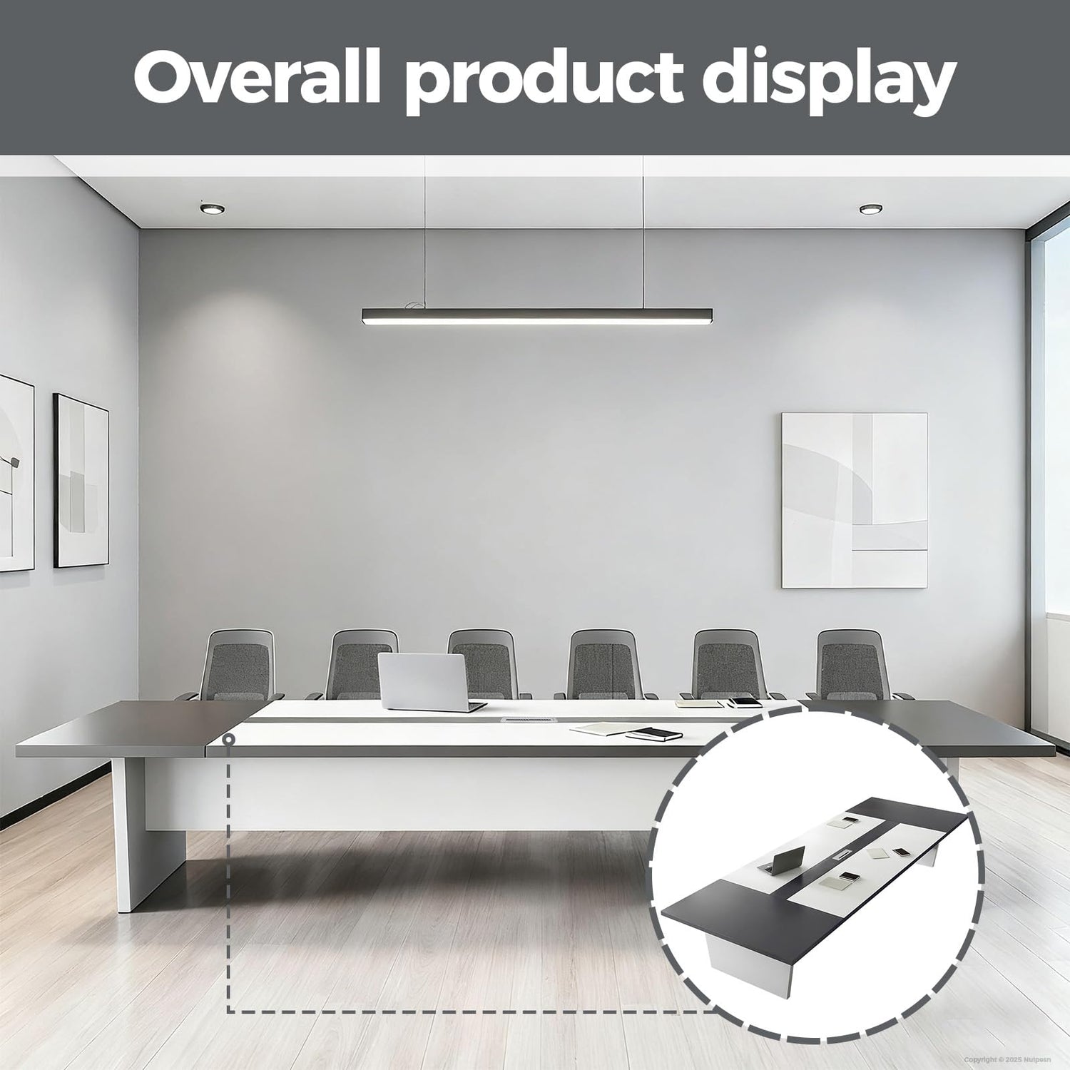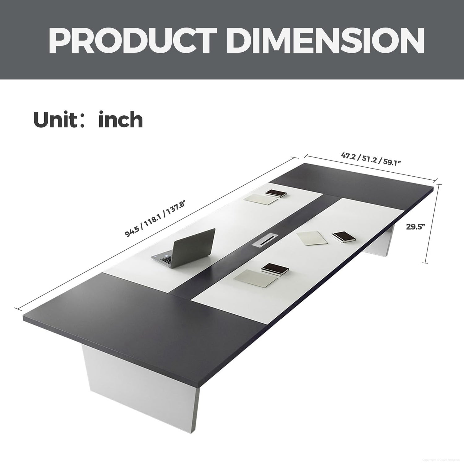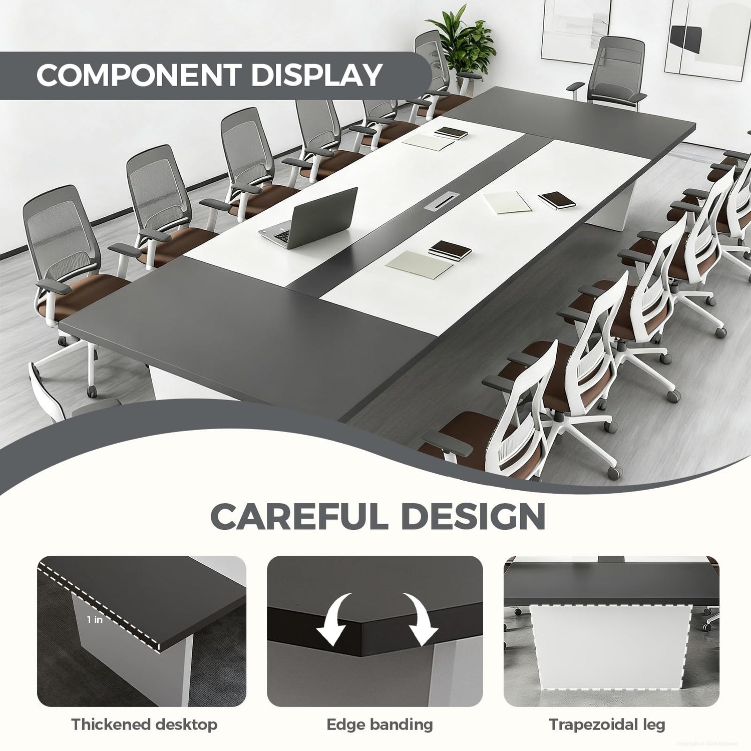 Nuipesn Rectangular Conference Room Table, Seminar Table Meeting Room Table Boardroom Desk Business Seminar Table Printer Desk no Chair for Office (White+Grey,9.84FT,118.11" L*51.18" W*29.53" H)