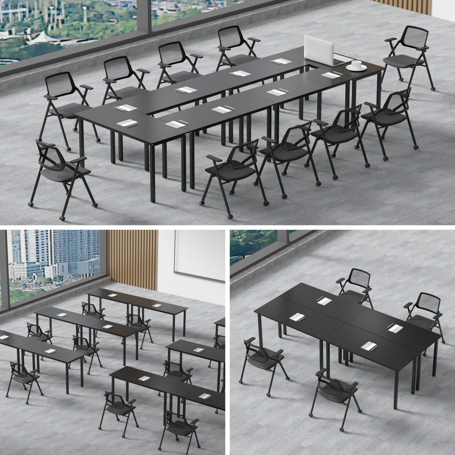 Okeysen Conference Room Table 2 Pack, Modern Meeting Table with Metal Frame, Seminar Desk for Boardroom, Meeting Room, Office, Classroom 55.12"x23.62"x29.53", Black