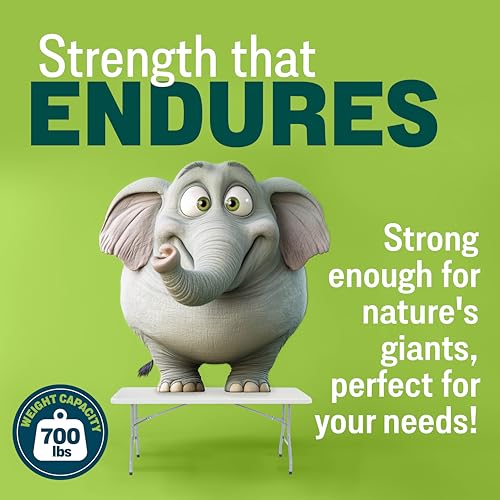 - HIGH WEIGHT CAPACITY: Built with a durable, non-bowing eggshell structure, this table supports up to 700 lbs of evenly distributed weight, making it ideal for conference setups, outdoor parties, or camping trips.