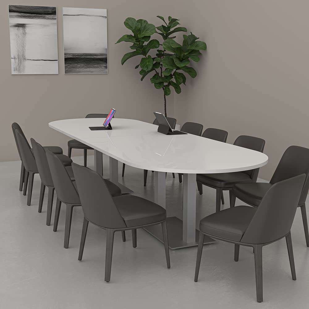 SKUTCHI DESIGNS INC. 12 Person Modular Conference Table with Metal Bases | Racetrack Shaped | Harmony Series | 12' | White