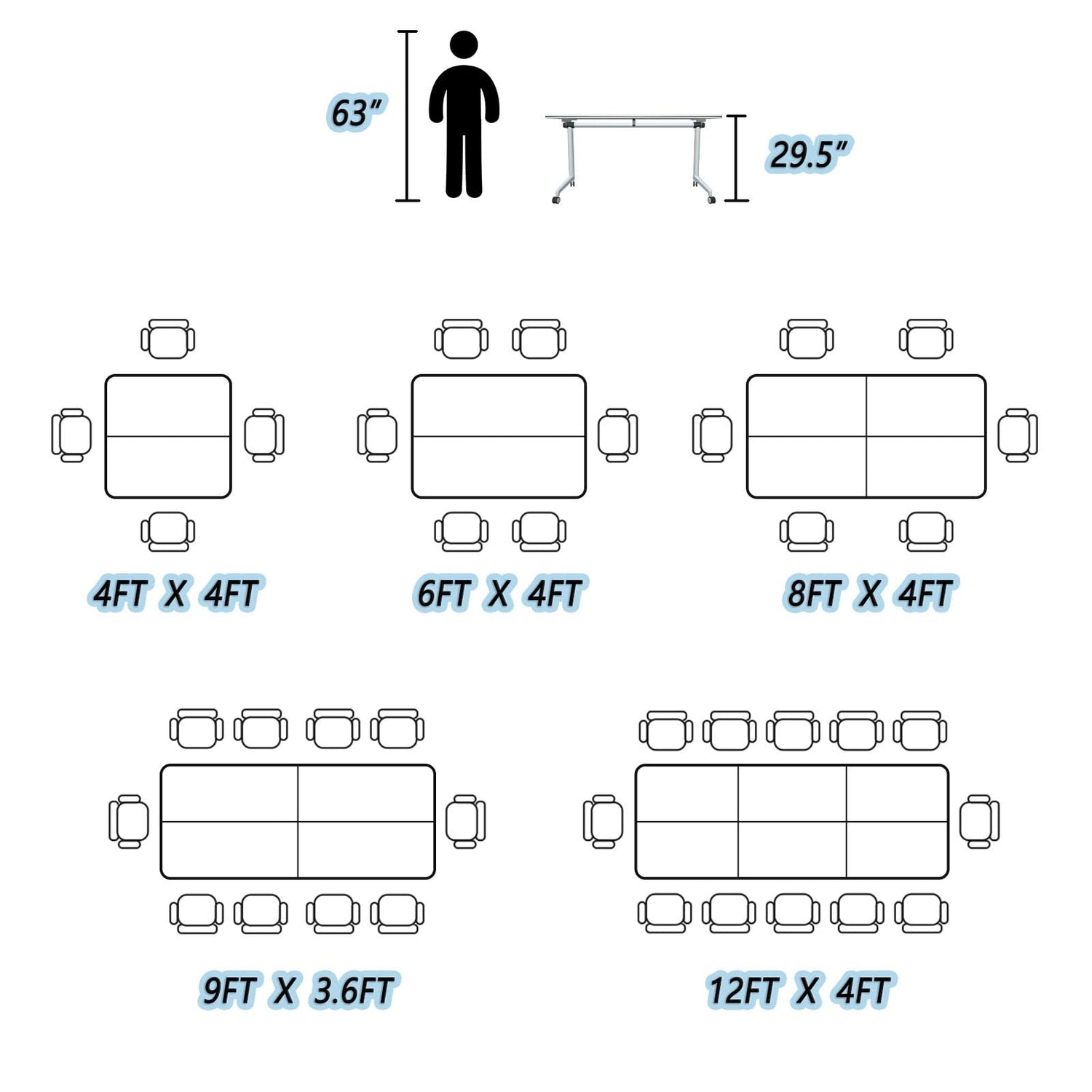 • Sturdy and durable conference tables: The desktop is made of thickened wood particle board, which is non-slip, waterproof and easy to clean. The table legs are made of thickened aluminum alloy, with strong load-bearing capacity and will not rust for a long time.