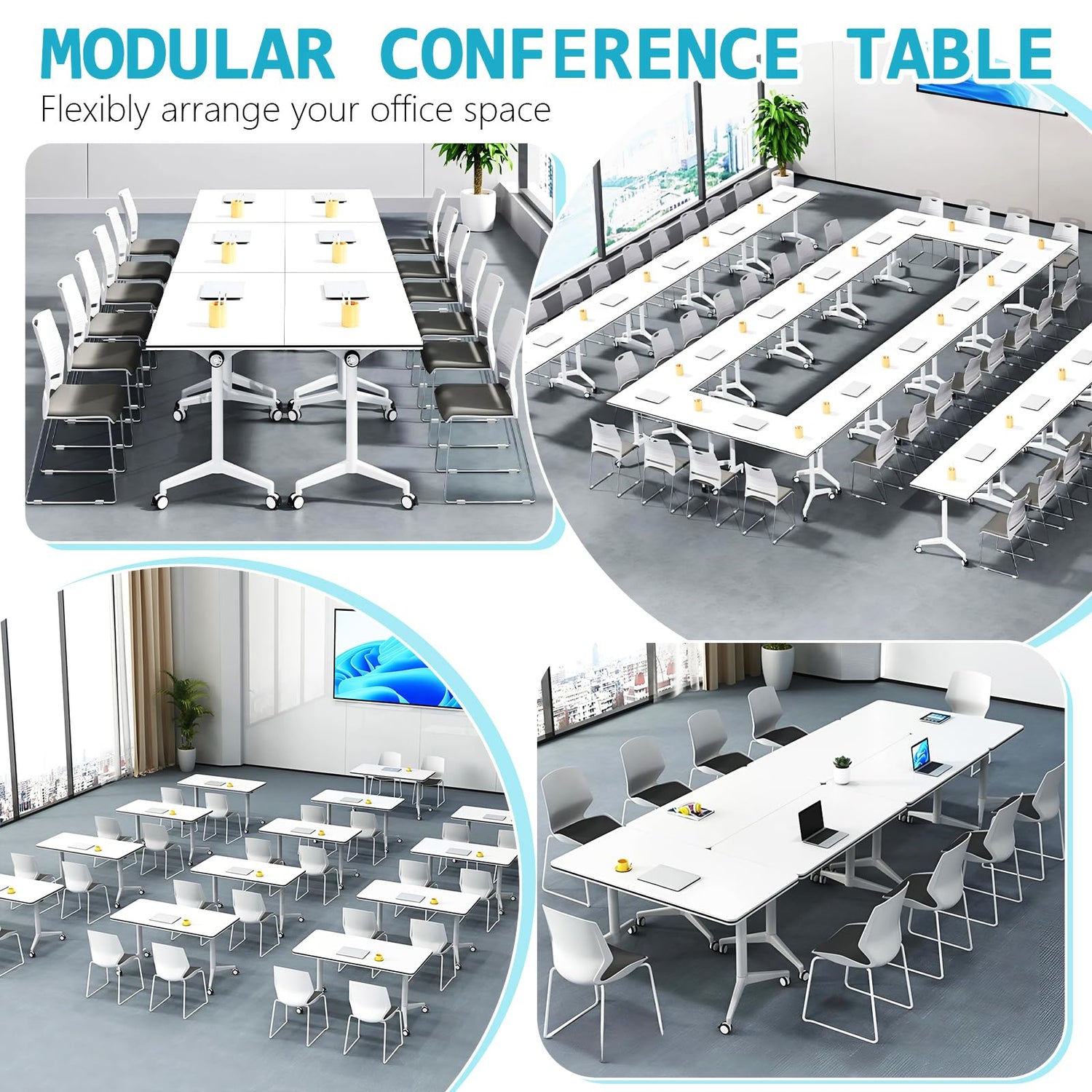 • Conference table with wheels: The conference table is equipped with 360° casters, and you can easily move the table to any position in the room. Just step on the brake on the universal wheel, the table will stay in place stably without shaking