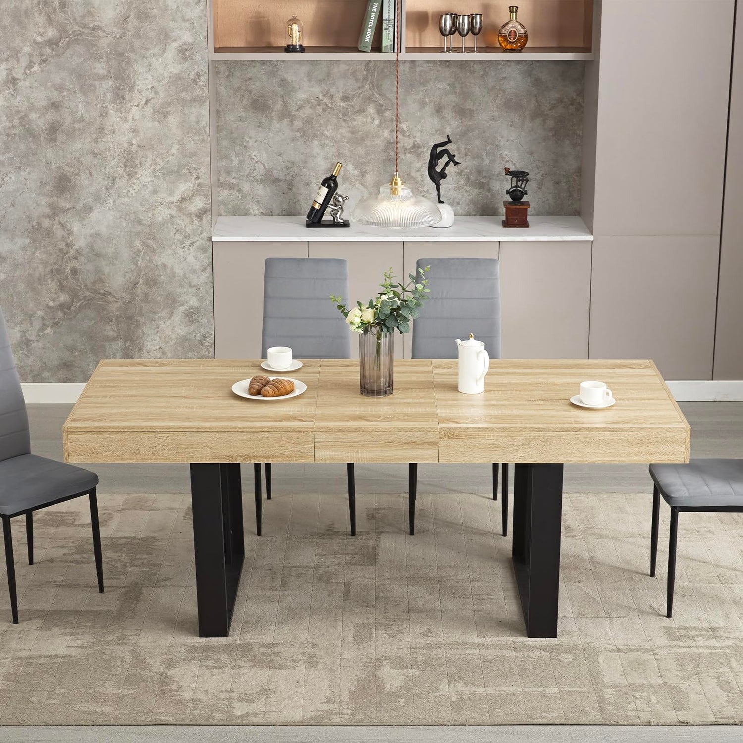 - [Durable Quality] Crafted from high-quality MDF board, this kitchen table is built to last. Its surface is waterproof, scratch-resistant, and high-temperature resistant, making it easy to maintain—simply wipe it down with a damp cloth. The table can support a maximum weight of 350 lbs, ensuring it remains a reliable centerpiece in your home for years.
