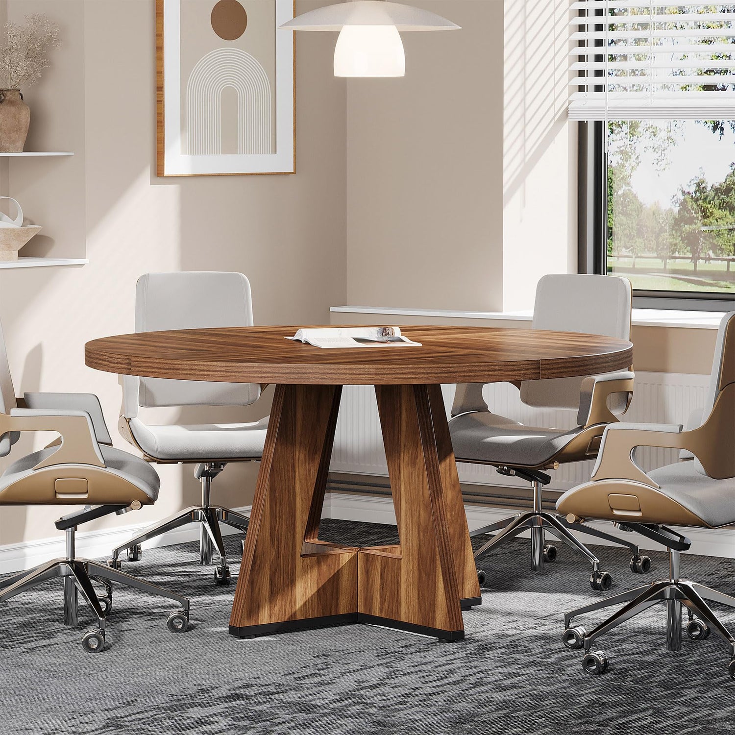 Tribesigns 47-Inch Round Conference Table for 4-6 People, Wooden Meeting Room Table with Thicken Tabletop and Wood Base (Walnut)