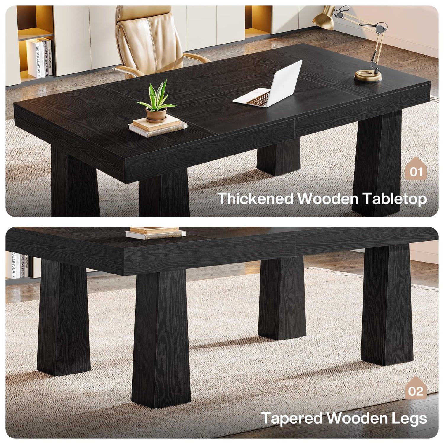 - Dual-Purpose Design: Workstation + Style Statement More than just a computer table, this desk doubles as a decor centerpiece. Its black desk finish resists scratches and complements any decor—whether you’re chasing deadlines or hosting Zoom calls