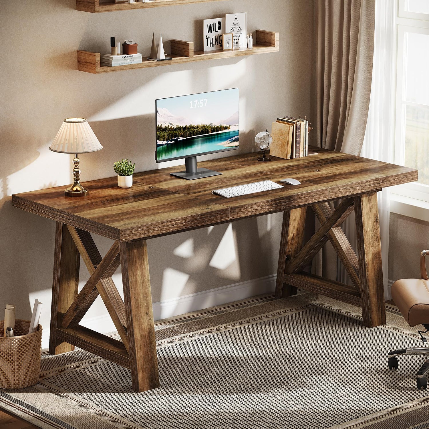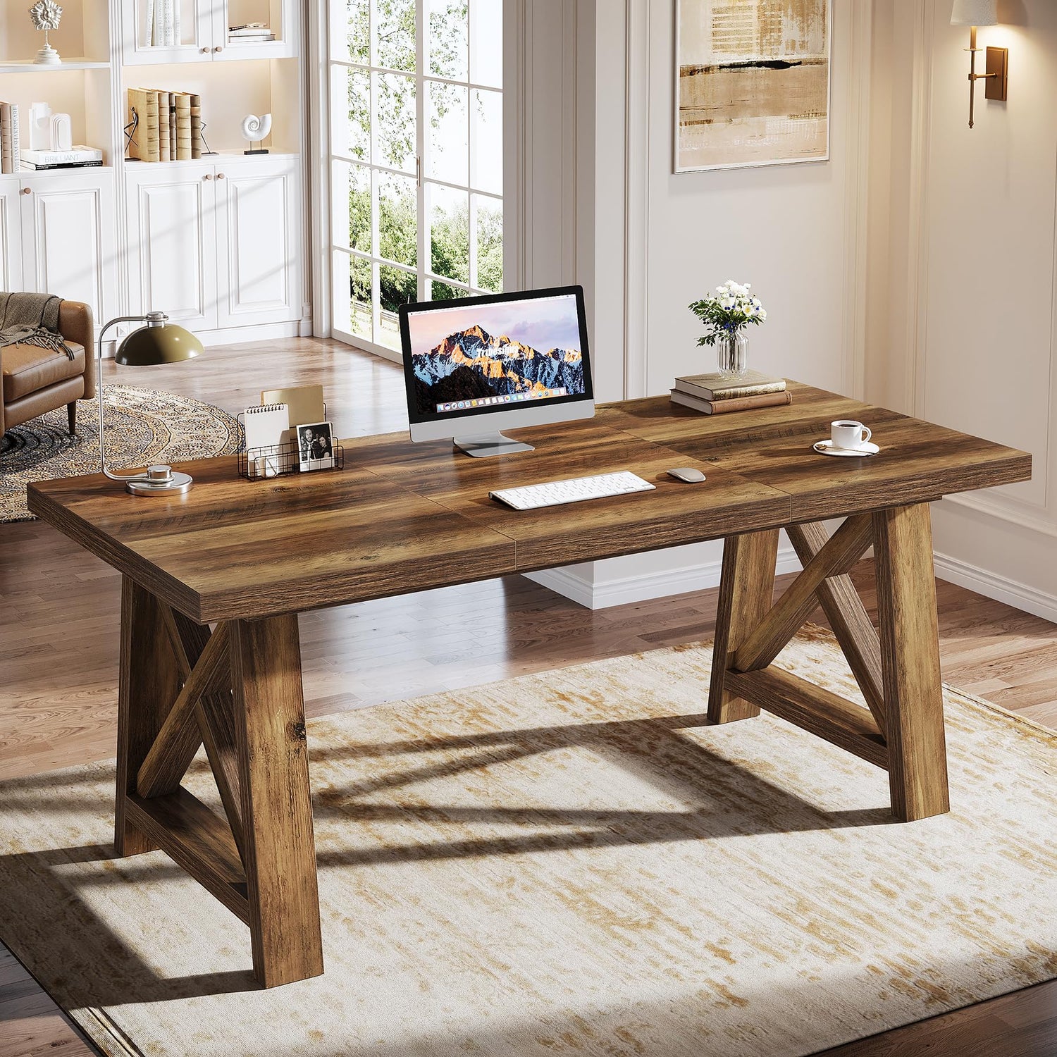 Tribesigns 63-Inch Executive Desk, Large Office Computer Desk with X-Shaped Legs, Modern Simple Workstation Study Writing Conference Table for Home Office, Rustic Brown