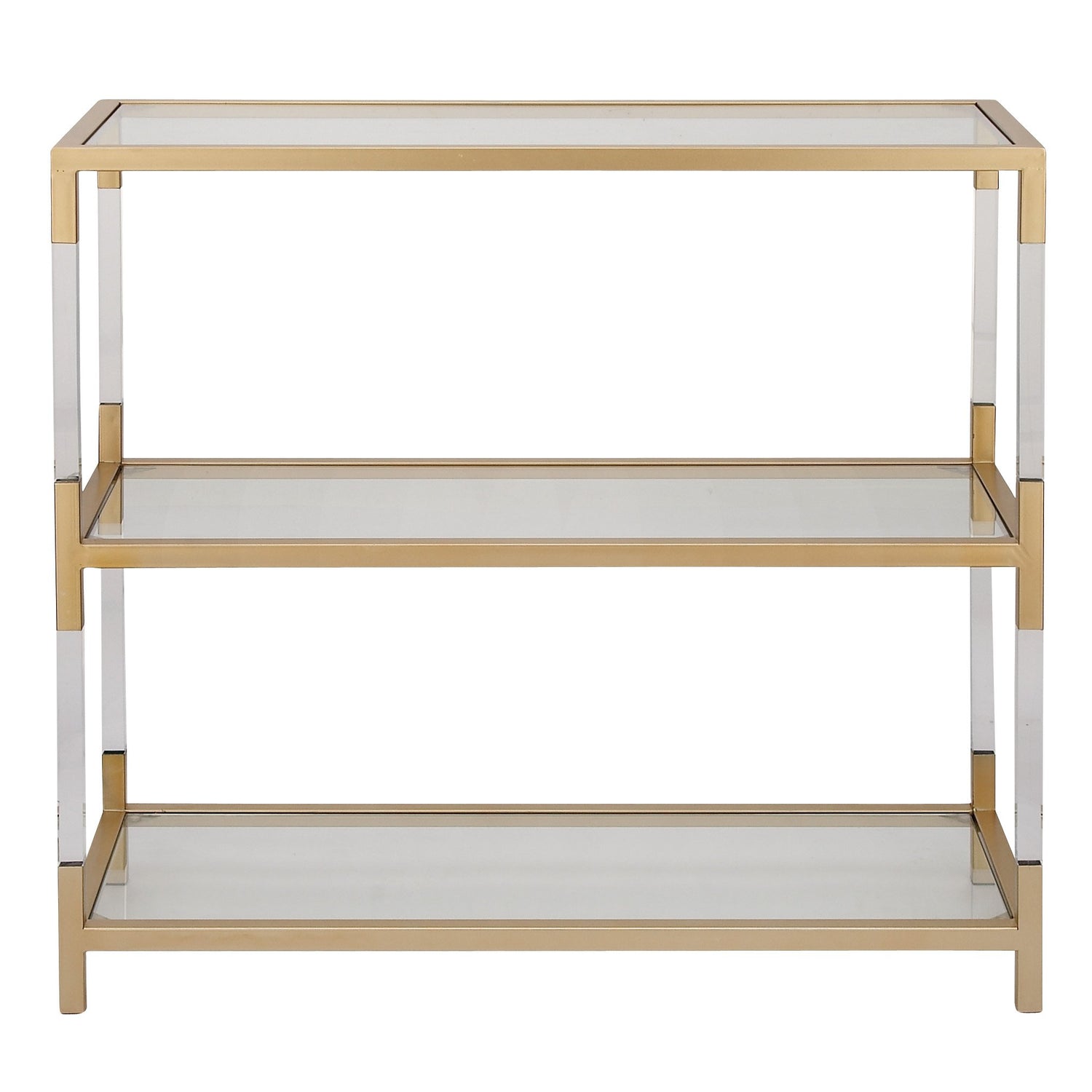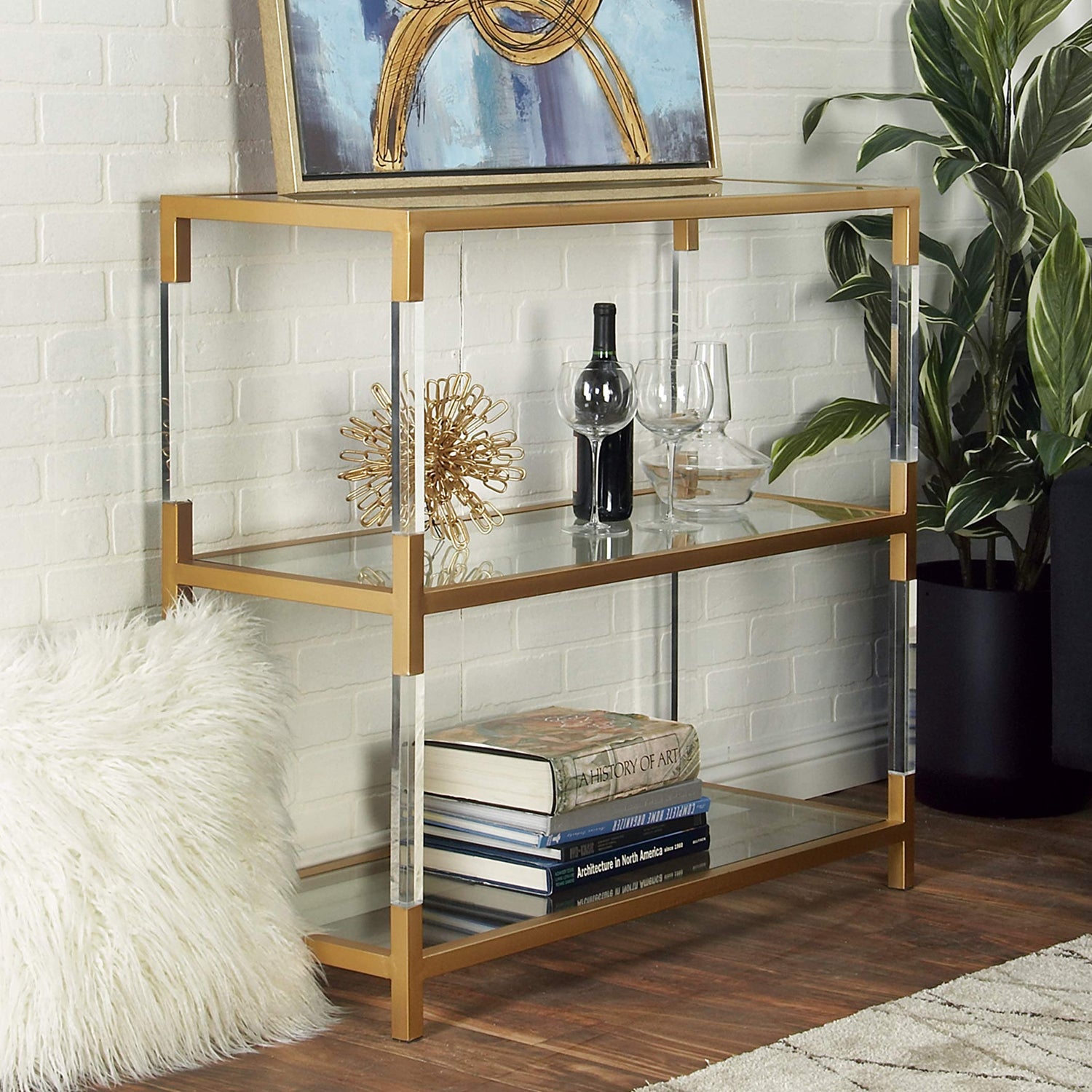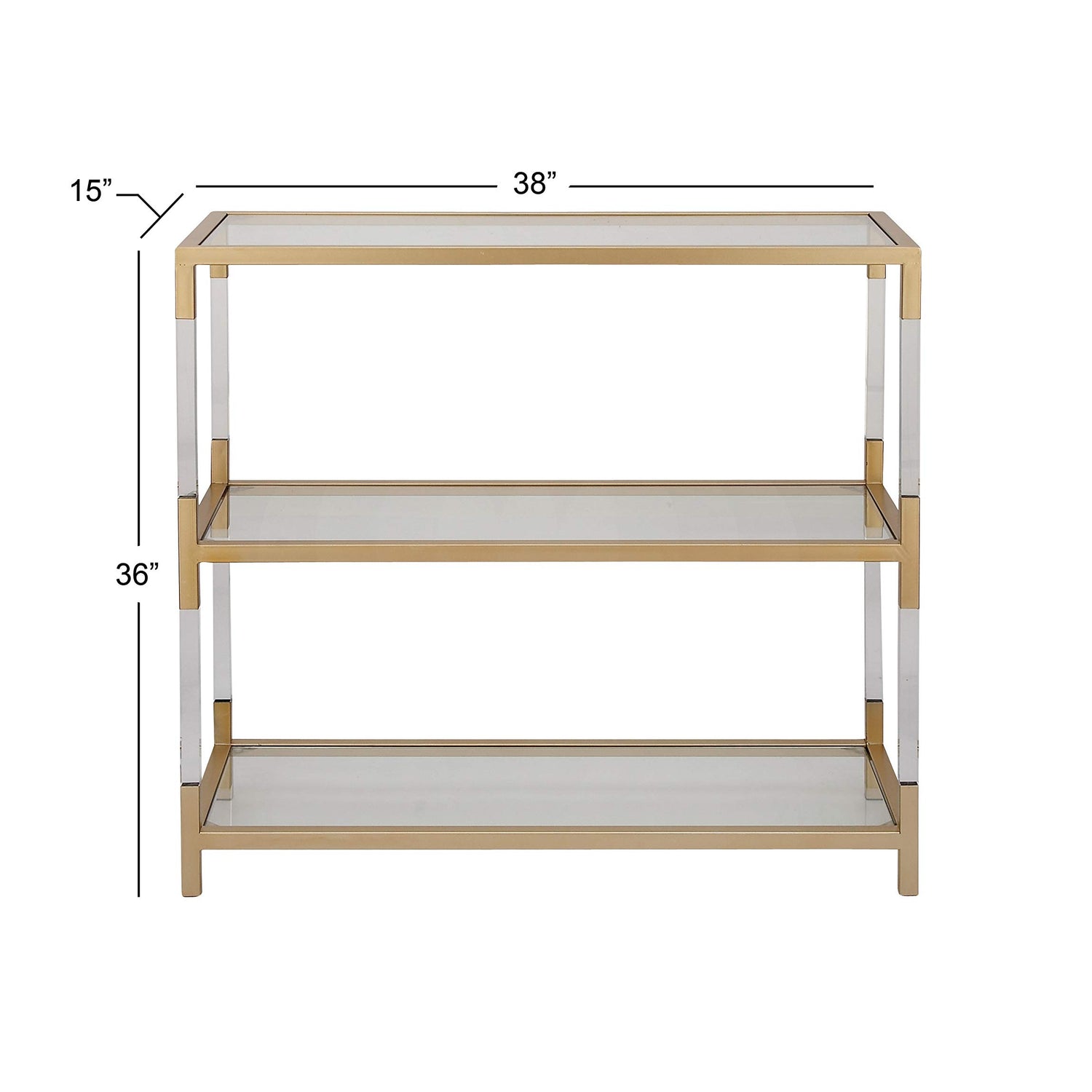 Deco 79 Metal Console Table 2 Shelf with Clear Glass Top and Acrylic Legs, 38" x 15" x 36", Gold