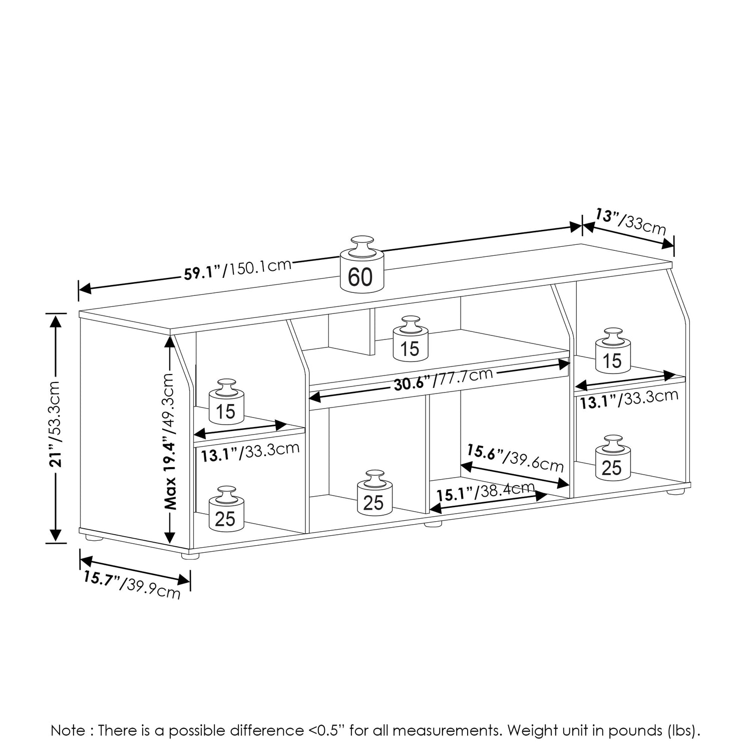 - Product Dimensions: 15.67 (D) x 59.06 (W) x 20.98 (H) Inches