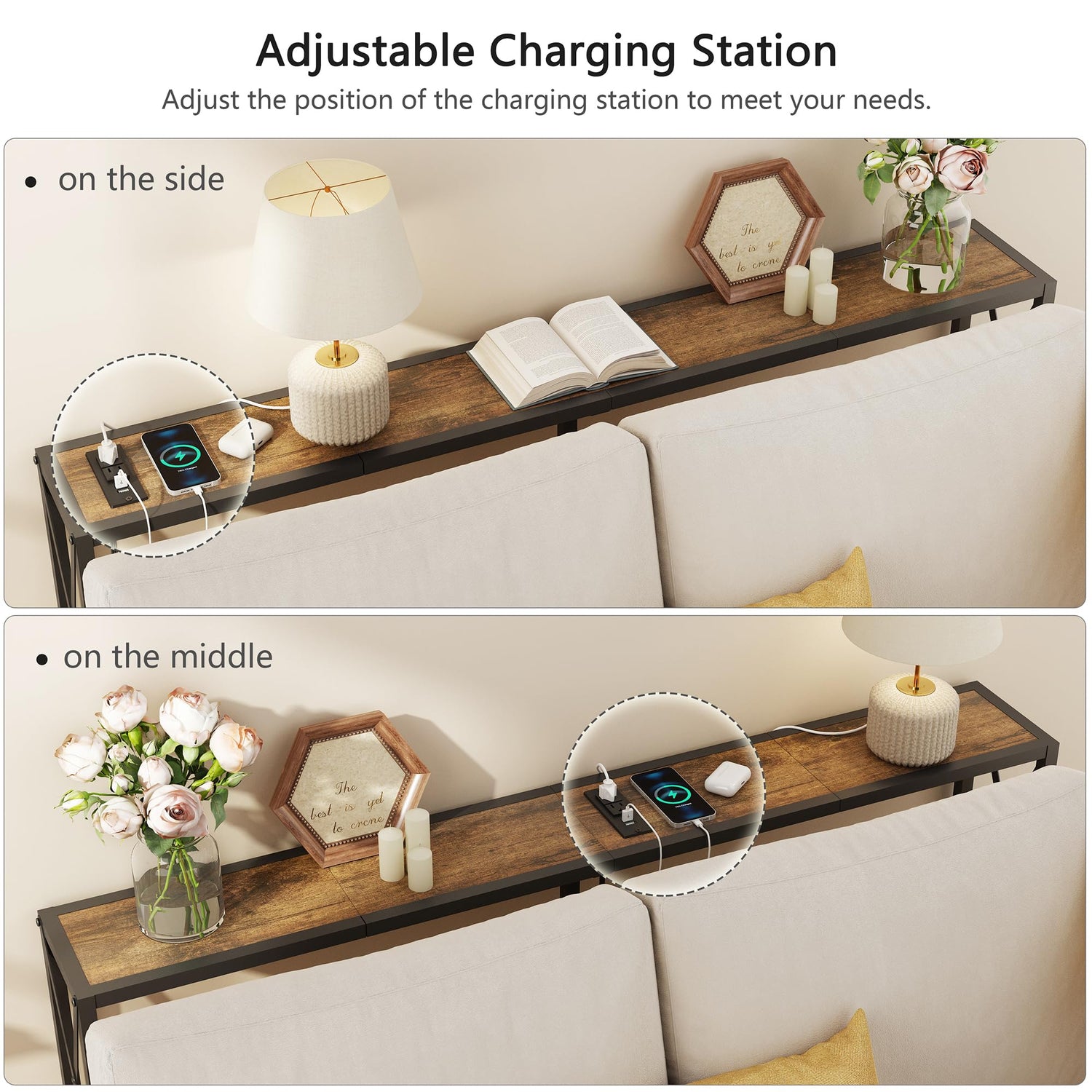 - Sofa Table With Charging Station: We know what you want, the sofa table is equipped with 2 outlets, 2 USB ports and 78-inch power cord. In addition, you can place the power strip where you like by adjusting the tabletop section. Let your mobile phone, laptop, lamp and other electronic devices charge in an orderly manner