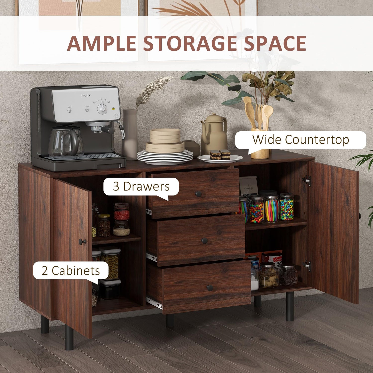 ● Can be used as a buffet cabinet, coffee station, or hallway storage unit