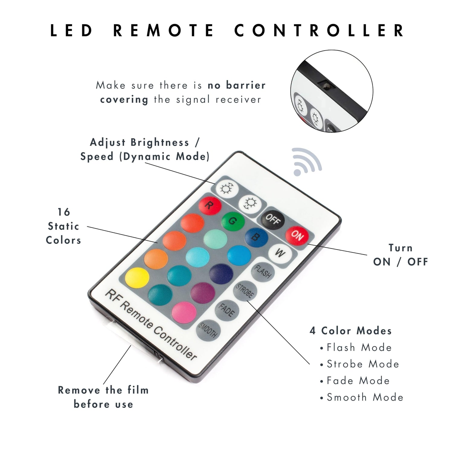 - 🌟VIBRANT USB LED LIGHT WITH REMOTE: Features a USB-powered LED light strip with 16 static colors, 4 dynamic color-changing modes, adjustable brightness, and easy control via remote (charger head not included).
