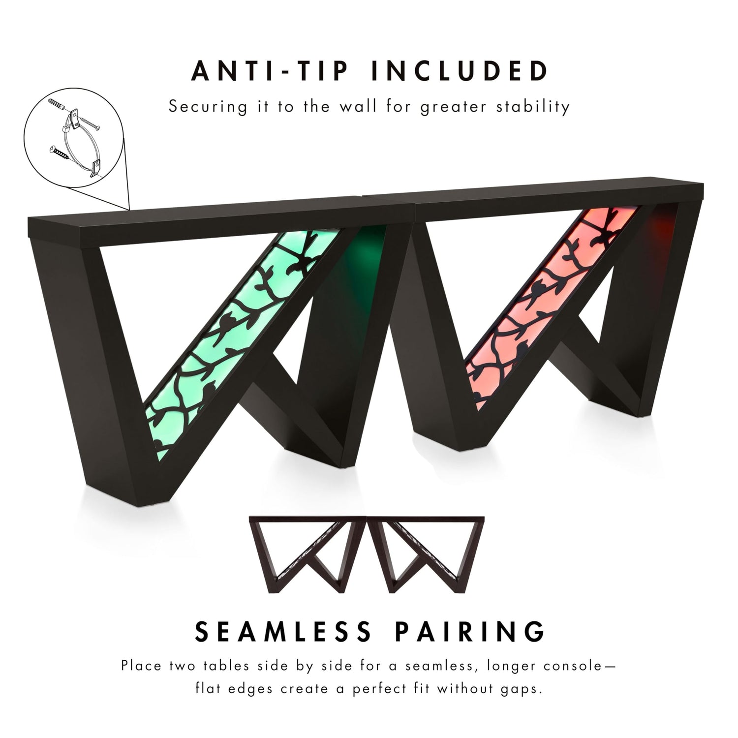 HOMES: Inside + Out Naomi Modern Decorative Accent LED Console Table with W-Shaped Legs and Remote, Wood Entryway Furniture for Living Room, Hallway, Entrance, Small Spaces, Black