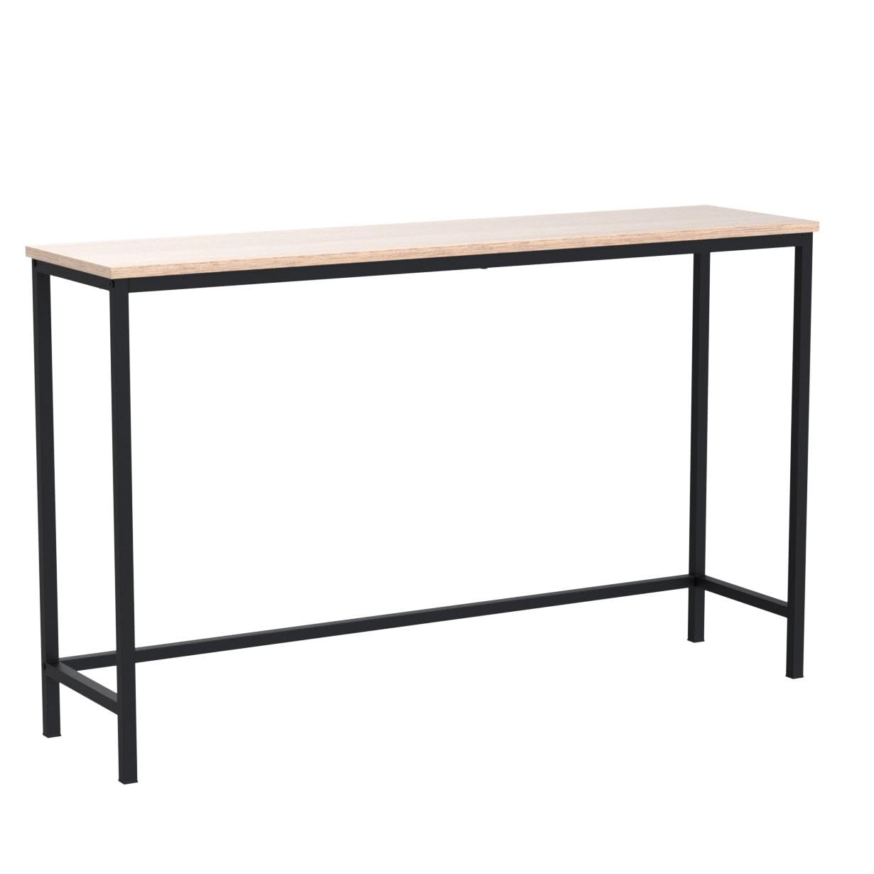 - Long-lasting Construction: The open, three-sided base is made from stable powder-coated metal, welded on the short ends. The table has an engineered wood surface in brown tones that hints at an industrial style and fits into a wide variety of open and narrow spaces. Four table legs are fitted with anti-skid pads for safety and support.