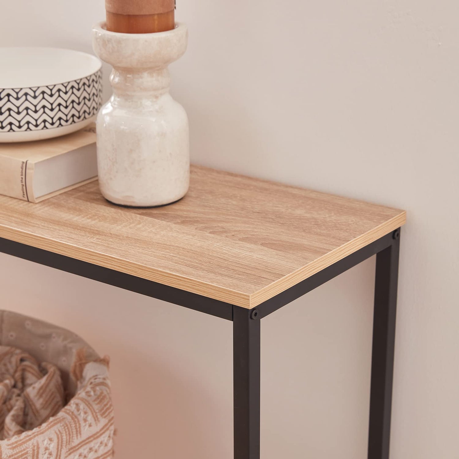 - Use of Small Space: With dimensions of 39.4 x 11.8 x 28.3 inches (100 x 30 x 72 cm), the table occupies small space and can be used hold picture frames, storage baskets, books, vases, or other small items.
