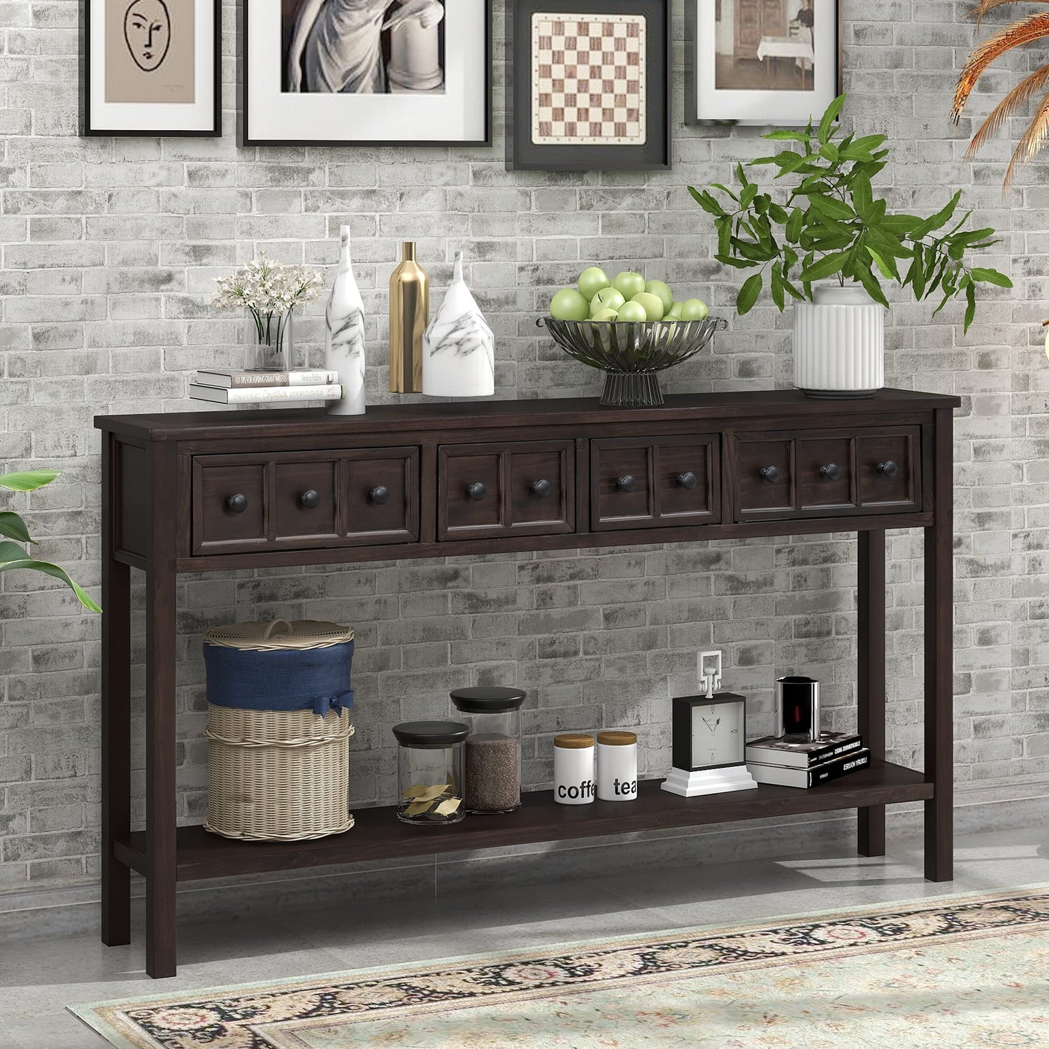 Merax Sofa Table 60 inch Sofa Table Long Console Table with Drawers and Shelf for Entryway Easy Assembly Hallway Table