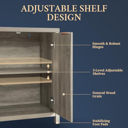 - 【Adjustable Shelves】The sideboard cabinet features adjustable shelves with 3 height options, each adjustable height differing by 2.7 inches. Customize the interior space according to your unique needs. Whether storing books, small tools, or decorations, maximize storage efficiency and adapt to changing requirements.