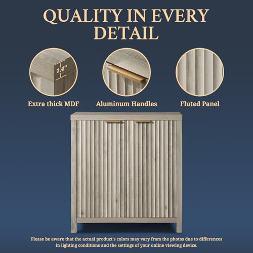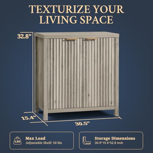 OAKHAM HOME Oxford Storage Cabinet Fluted Sideboard Buffet Cabinet with Adjustable Shelves, Modern Accent Cabinet Multifunctional Console Cabinet for Living Room, Kitchen.(Grey Oak)