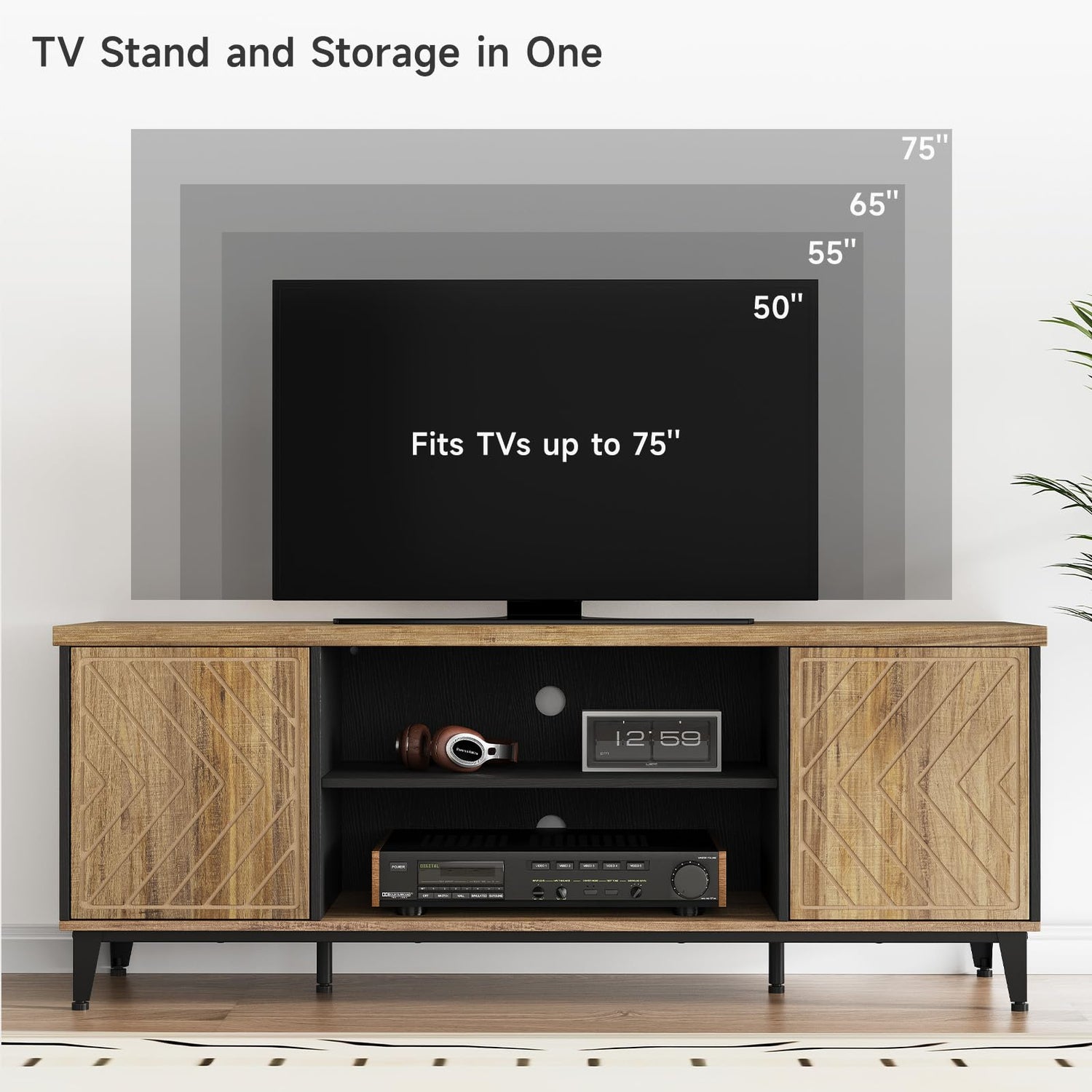 ONBRILL TV Stand for 55/60/65 Inch TV, LED Entertainment Center with Storage Cabinets and Adjustable Shelves, Mid Century Modern Wood TV Media Console for Living Room, Bedroom