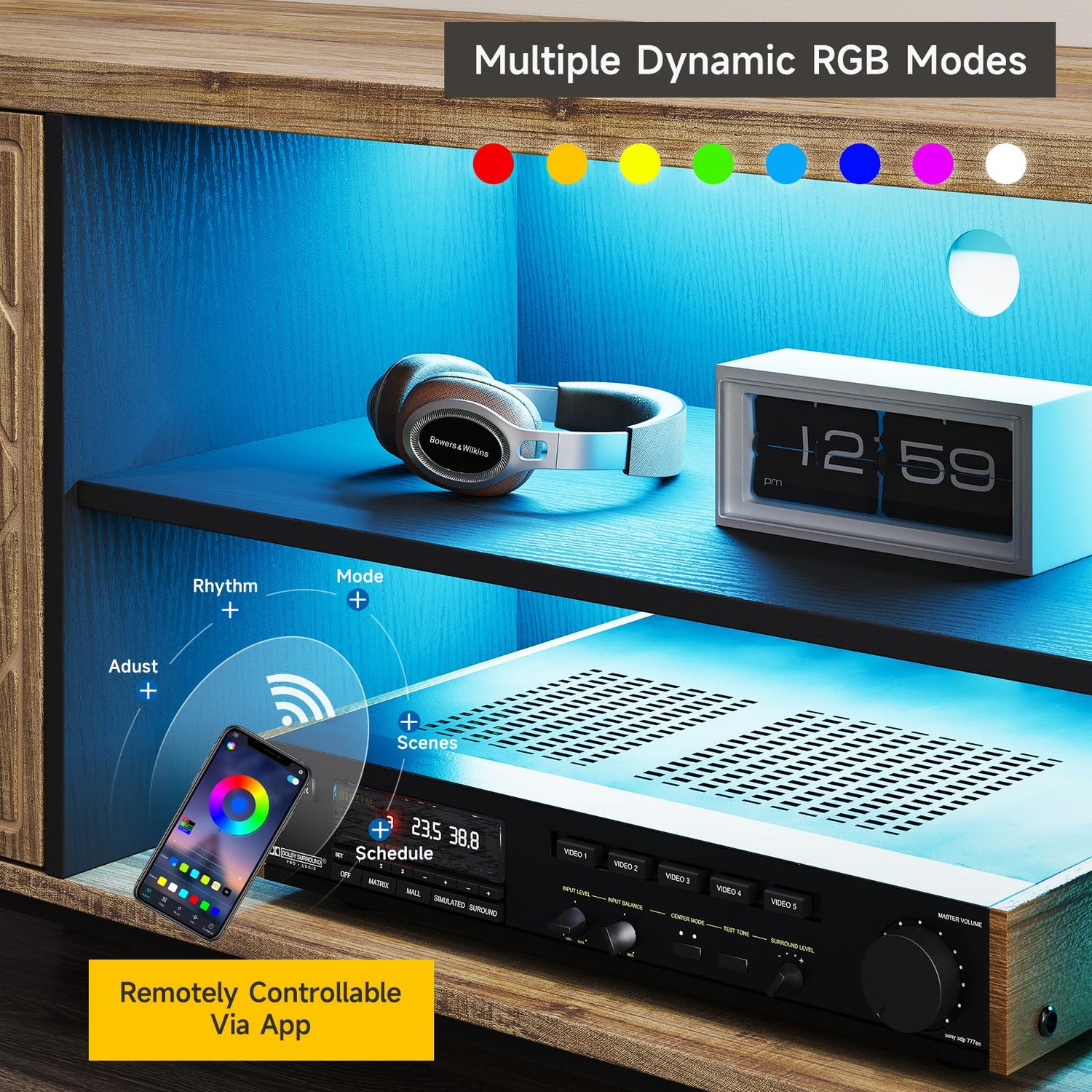 - LED Entertainment Center: The wood TV media console includes LED strips that provide chic, modern lighting effects that transform your home into a sophisticated, welcoming haven, making your viewing experience more enjoyable and immersive.