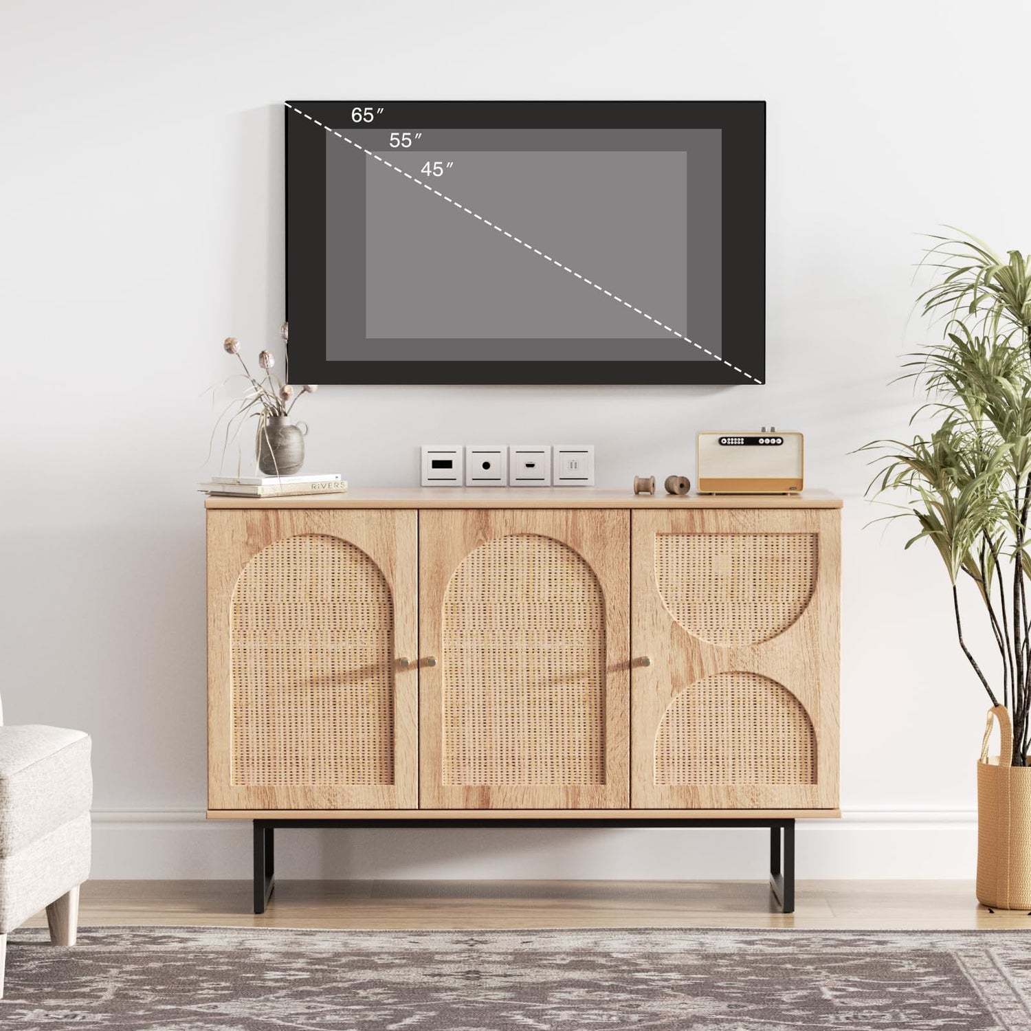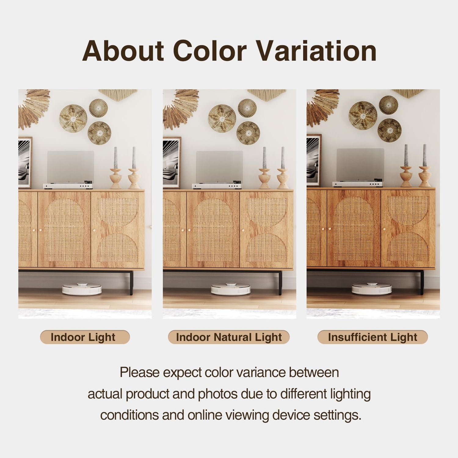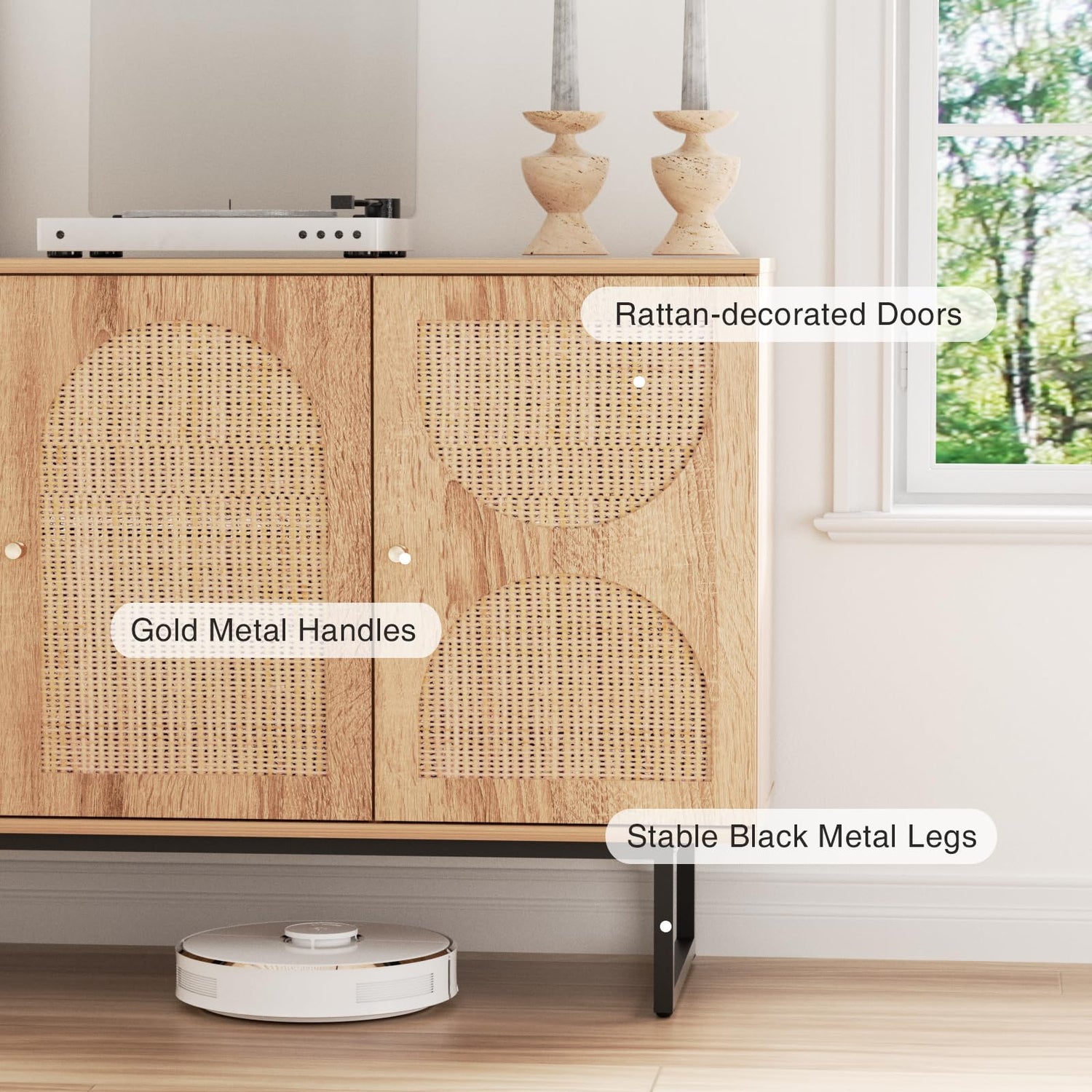 - [ Sufficient Storage Space ] Get tired of a clutted room? This sideboard buffet cabinet is designed with ample storage space to keep your daily essentials organized and easily accessible. The air-through rattan door design can also provide air circulation, keeping the interior of the cabinet odor-free.