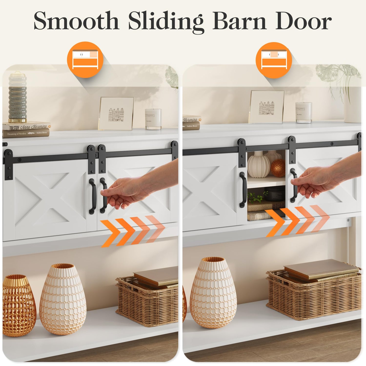 - 【Rustic Sliding Barn Doors】They're not just a looker, they're super handy too. The entryway table with storage glide smoothly on rails, adding a dash of style while keeping your stuff within arm's reach. It's like having secret compartments and an open display all in one.