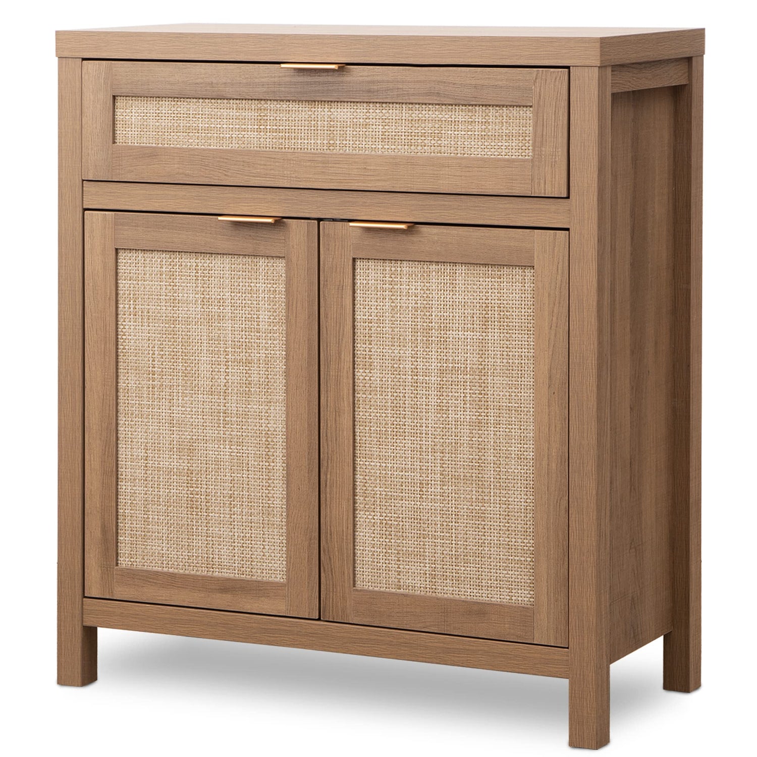 SICOTAS Buffet Cabinet Sideboard with Storage, Rattan Accent Cabinet with Doors Drawer, Boho Credenzas Farmhouse Buffet Table Console Coffee Bar Cabinet for Entryway Living Room, Natural Oak