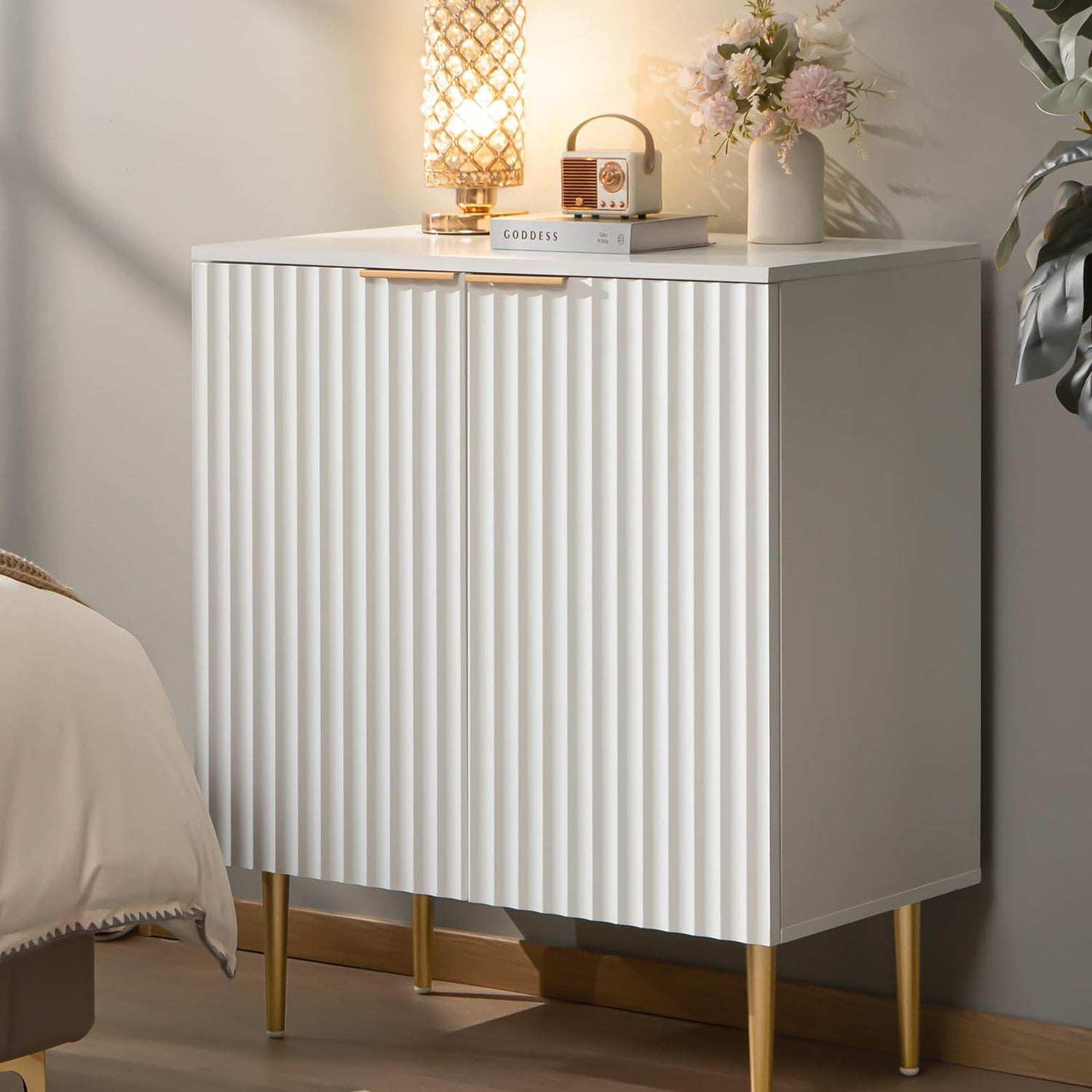 SICOTAS Fluted White Storage Cabinet Set of 2, Wood Sideboard Buffet Cabinet with Spray-painted Finish, Console Table with Wooden Credenza Accent Cabinet for Living Room, Dining Room, Entryway