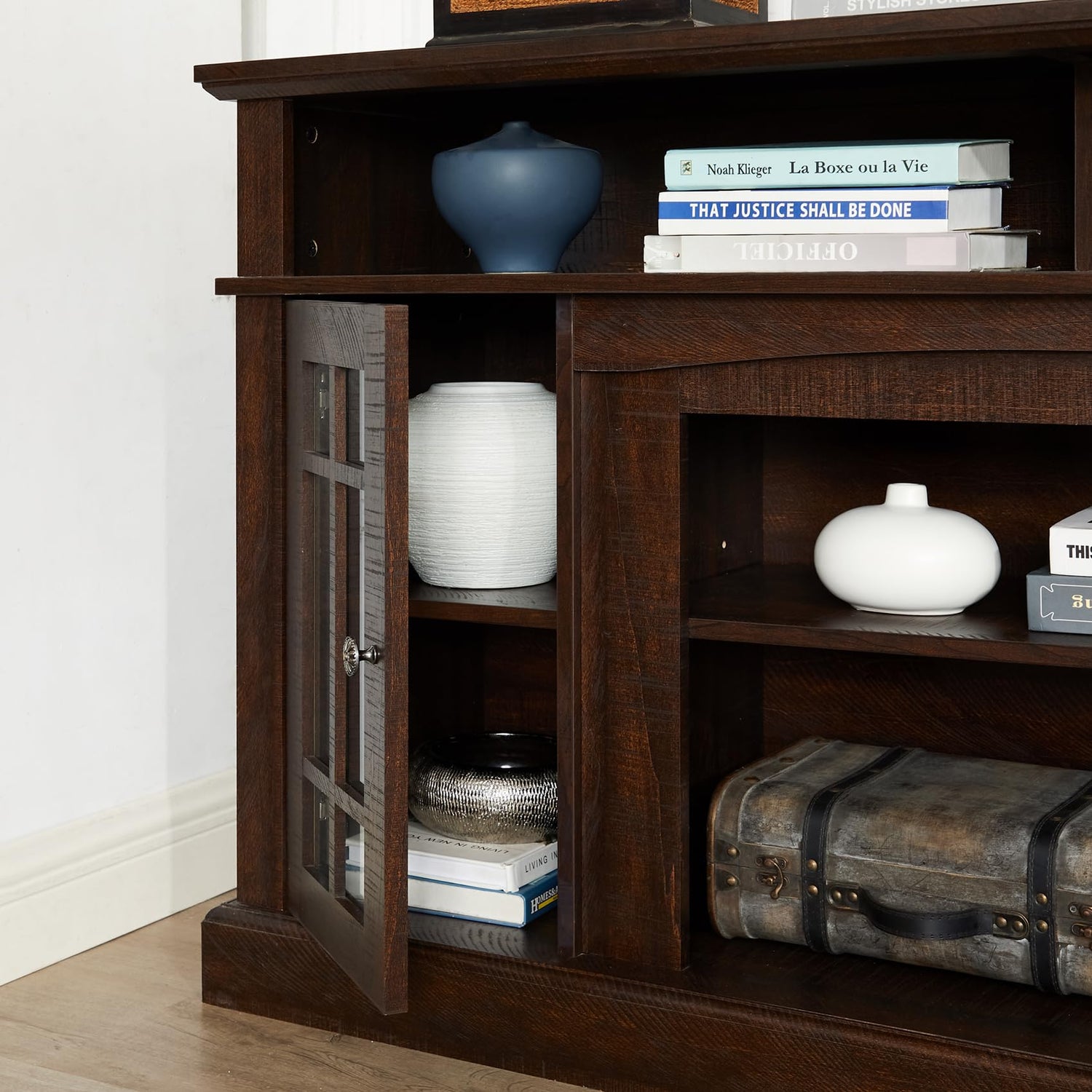 SUNLIFER 58" Farmhouse Entertainment Center: Espresso Wood TV Stand for 60 Inch TV | Rustic Tall TV Console for Living Room with Storage Cabinet and Adjustable Shelves