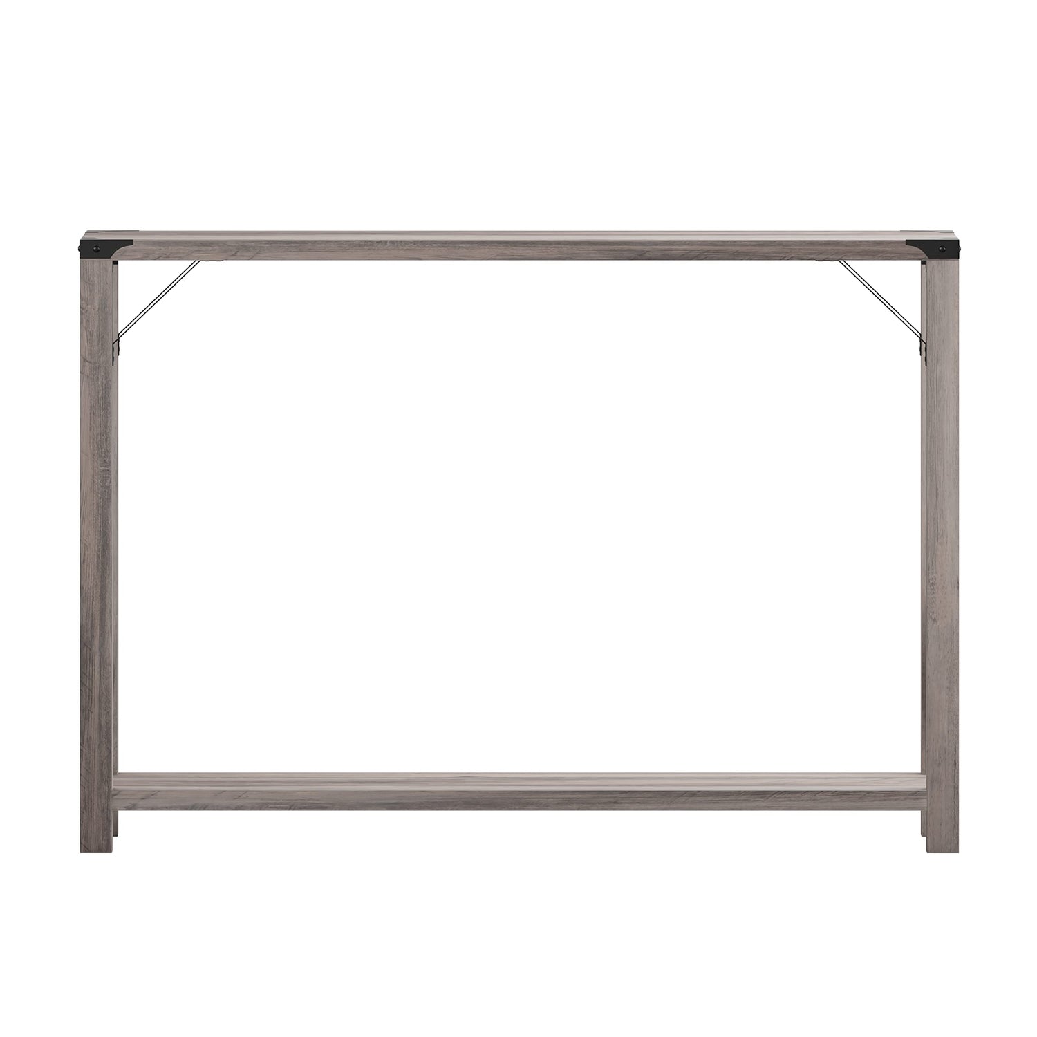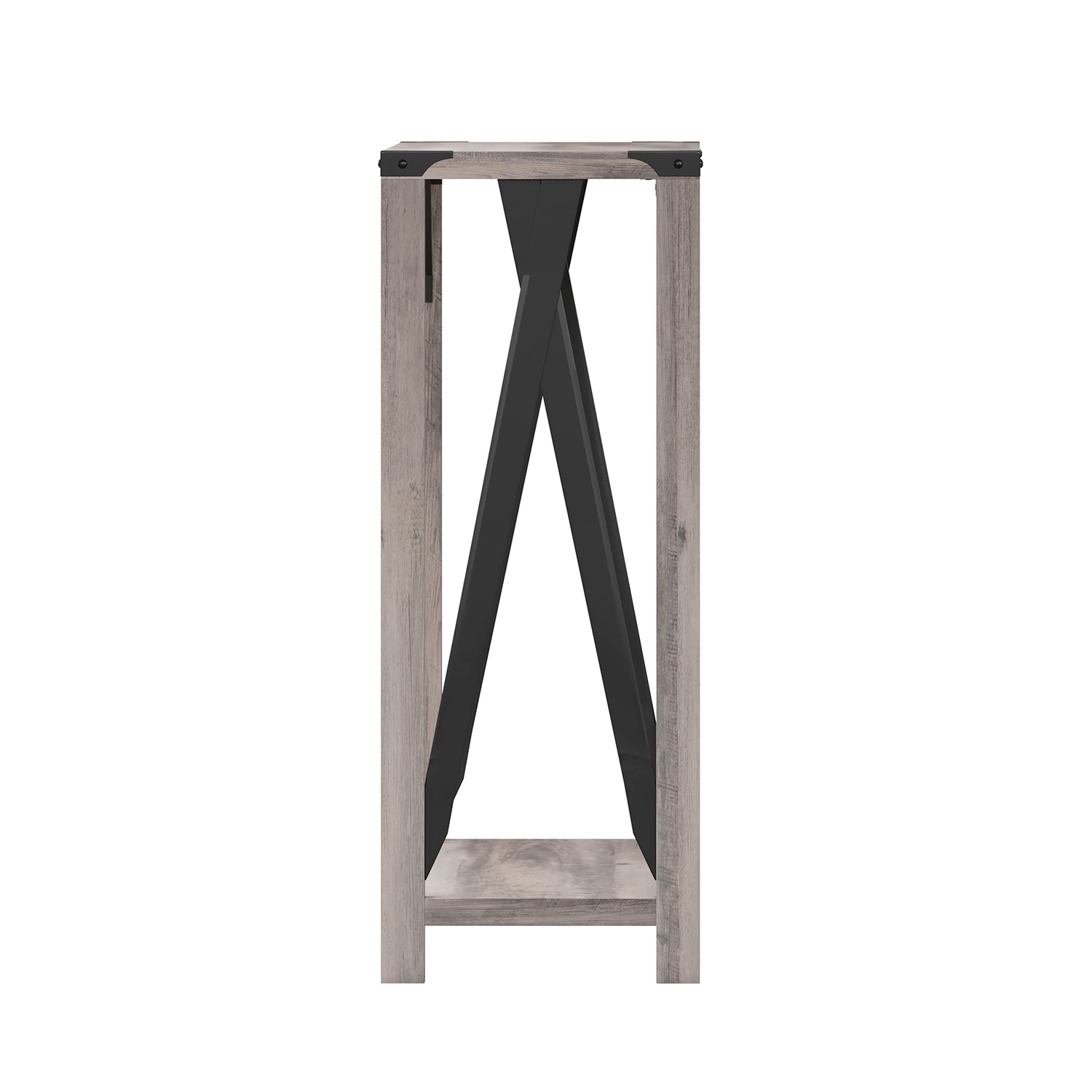 Taylor & Logan Willard Gray Wash Wood Two Tier Modern Farmhouse Console Table with Black Metal Corner Accents and Cross Bracing