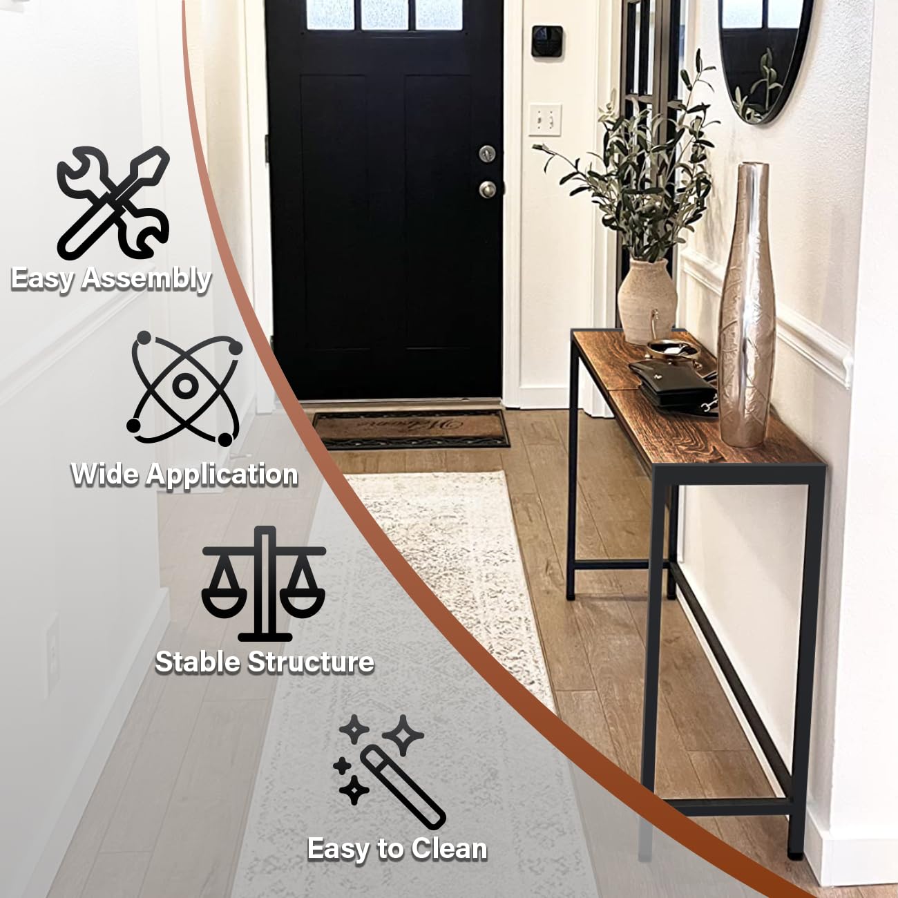 Tigerden Industrial 33" Narrow Console Table, Sofa Table for Entryway, Couch Table, Entrance Side Table for Hallway, Living Room, Foyer, Corridor, Bedroom, Rustic Brown and Black