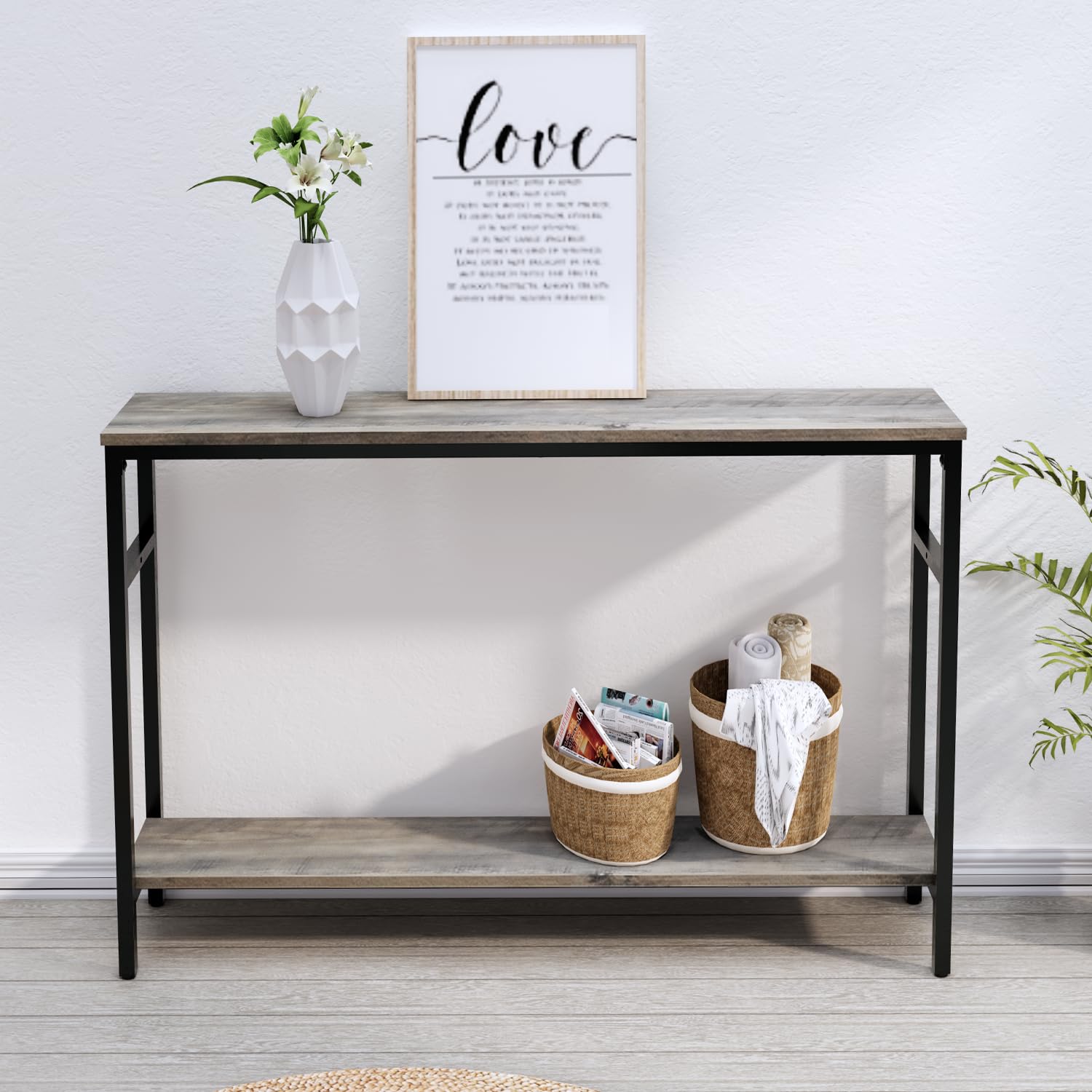 Timberer Narrow Console Table, 47 Inch Sofa Table with Adjustable Shelf, 2-Tier Long Skinny Table for Hallway, Entryway, Living Room, Foyer, Grey