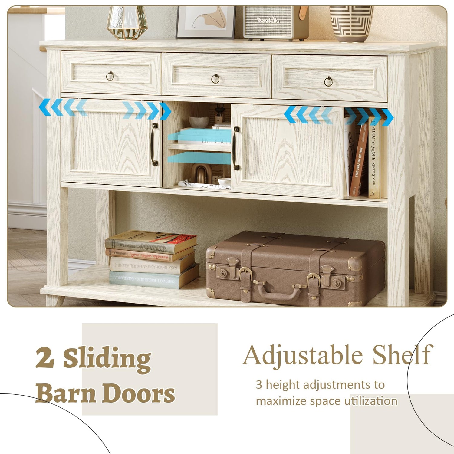 Vabches Entryway Table with 2 Sliding Barn Doors, 47" Farmhouse Console Table with Storage and 3 Drawers, Wood Rustic Sofa Table for for Living Room, Entryway, Hallway, White Grey Oak