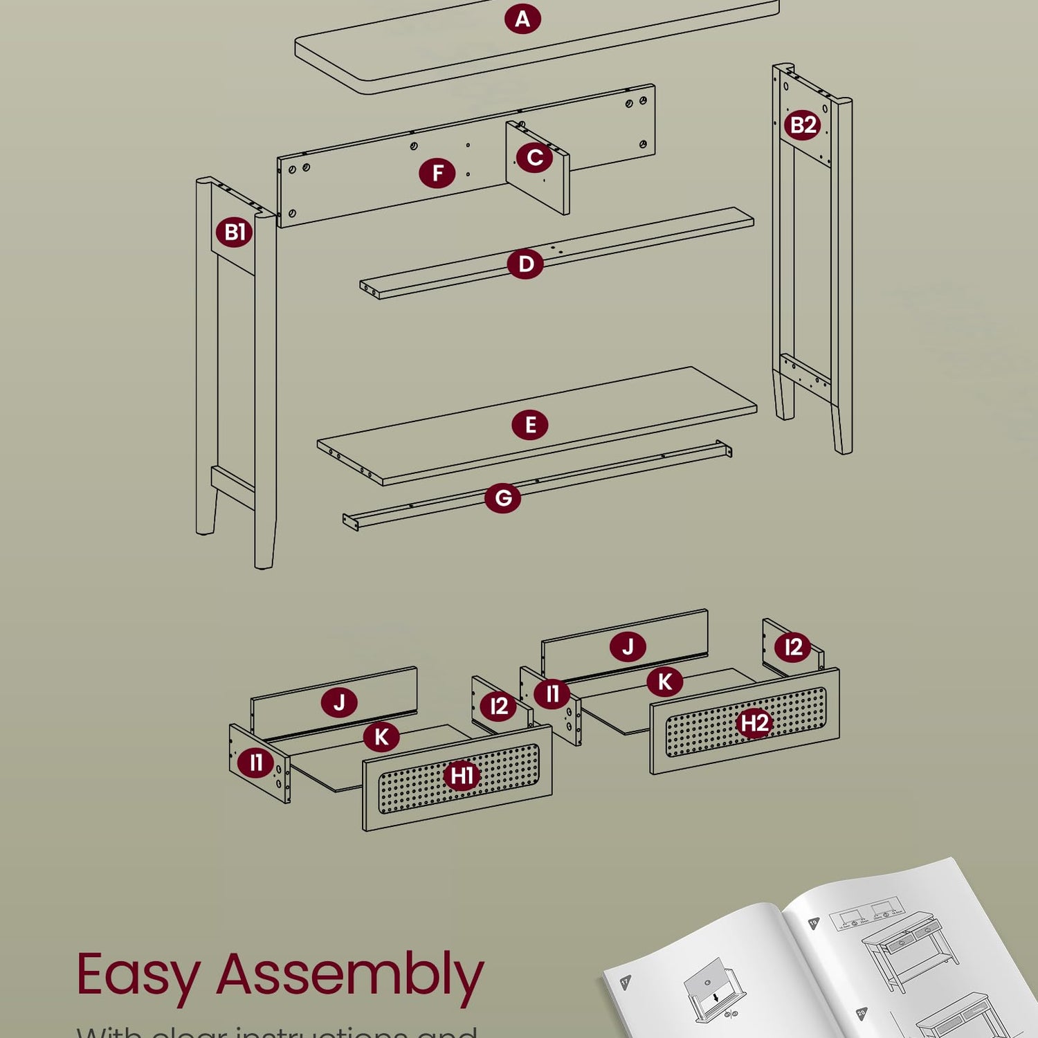 - [Ample Storage] Maintain an organized space with this narrow entryway table. It features a large tabletop to perch your often-used items or display decorations, 2 big drawers to tuck away private items, and an open shelf for shoes or storage baskets