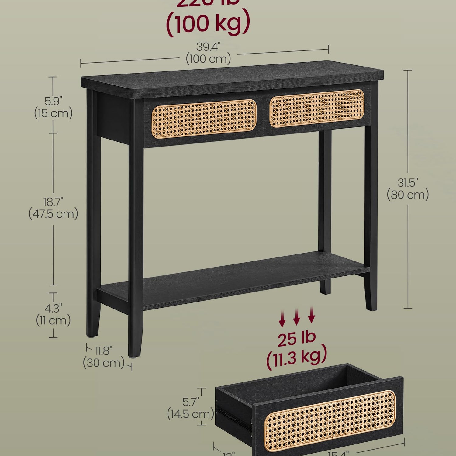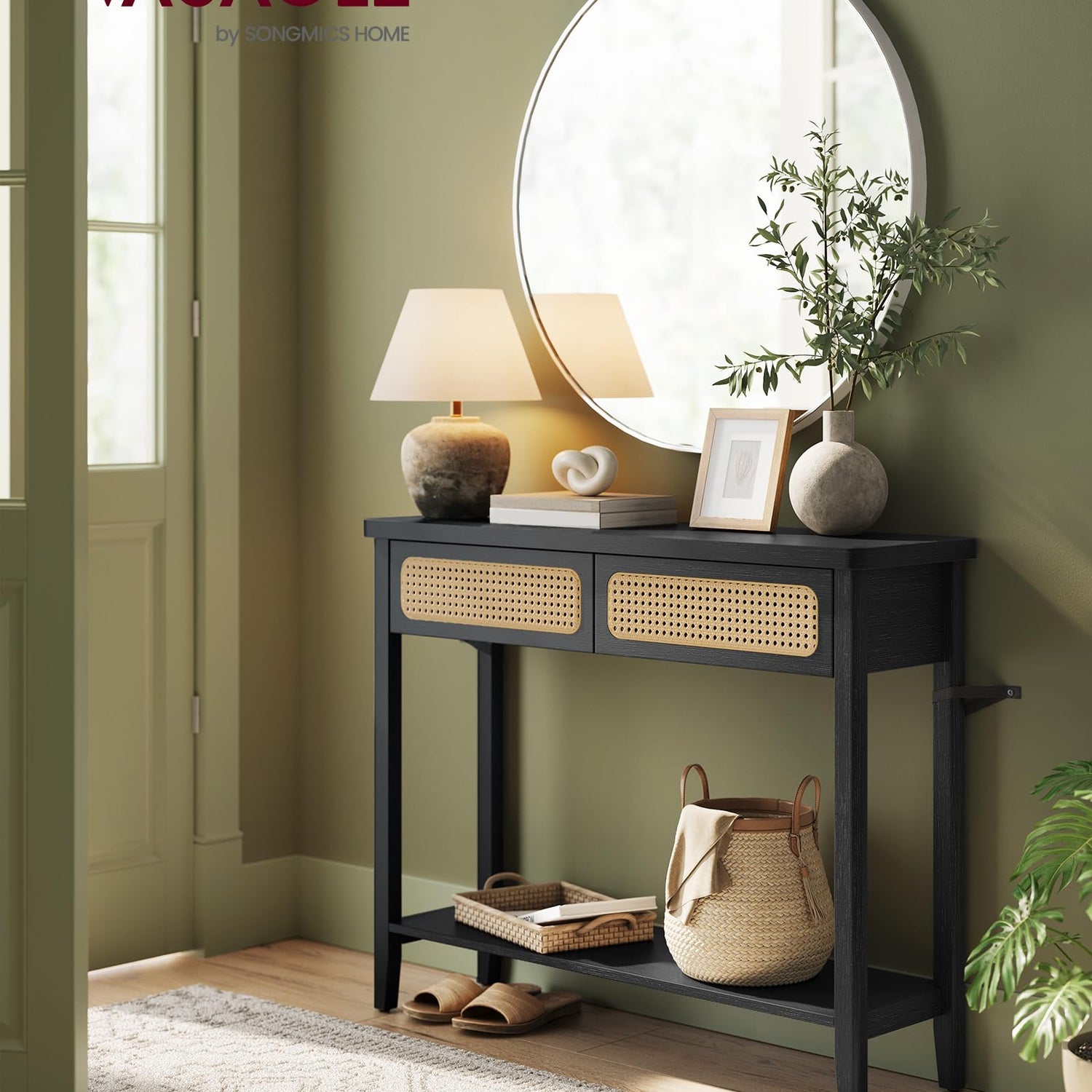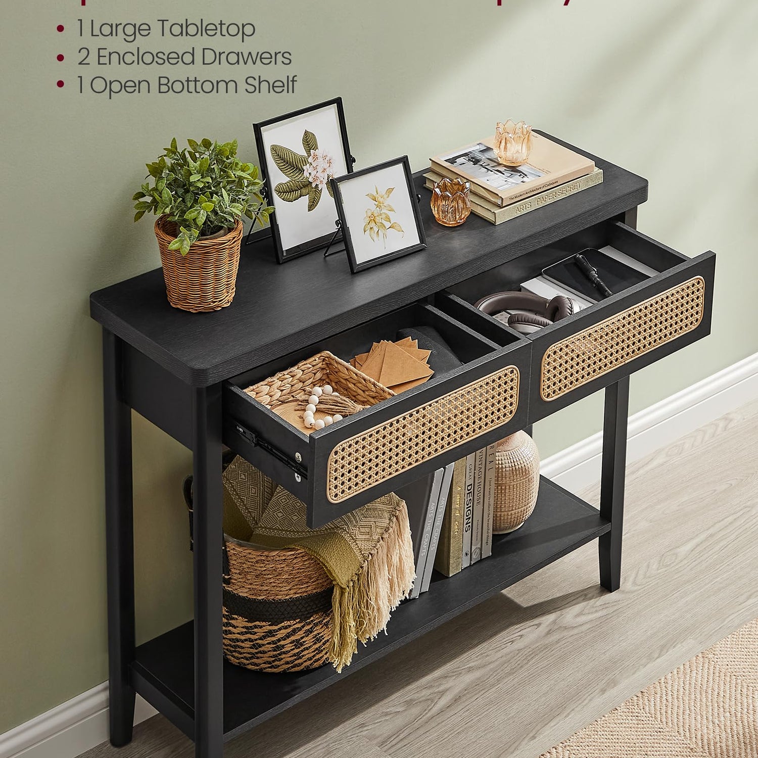 VASAGLE Console Table, Sofa Table, Narrow Entryway Table, Entry Table with 2 Drawers, Open Storage Shelf, Rounded Corners, for Living Room, Boho Style, Ash Black ULNT016B21