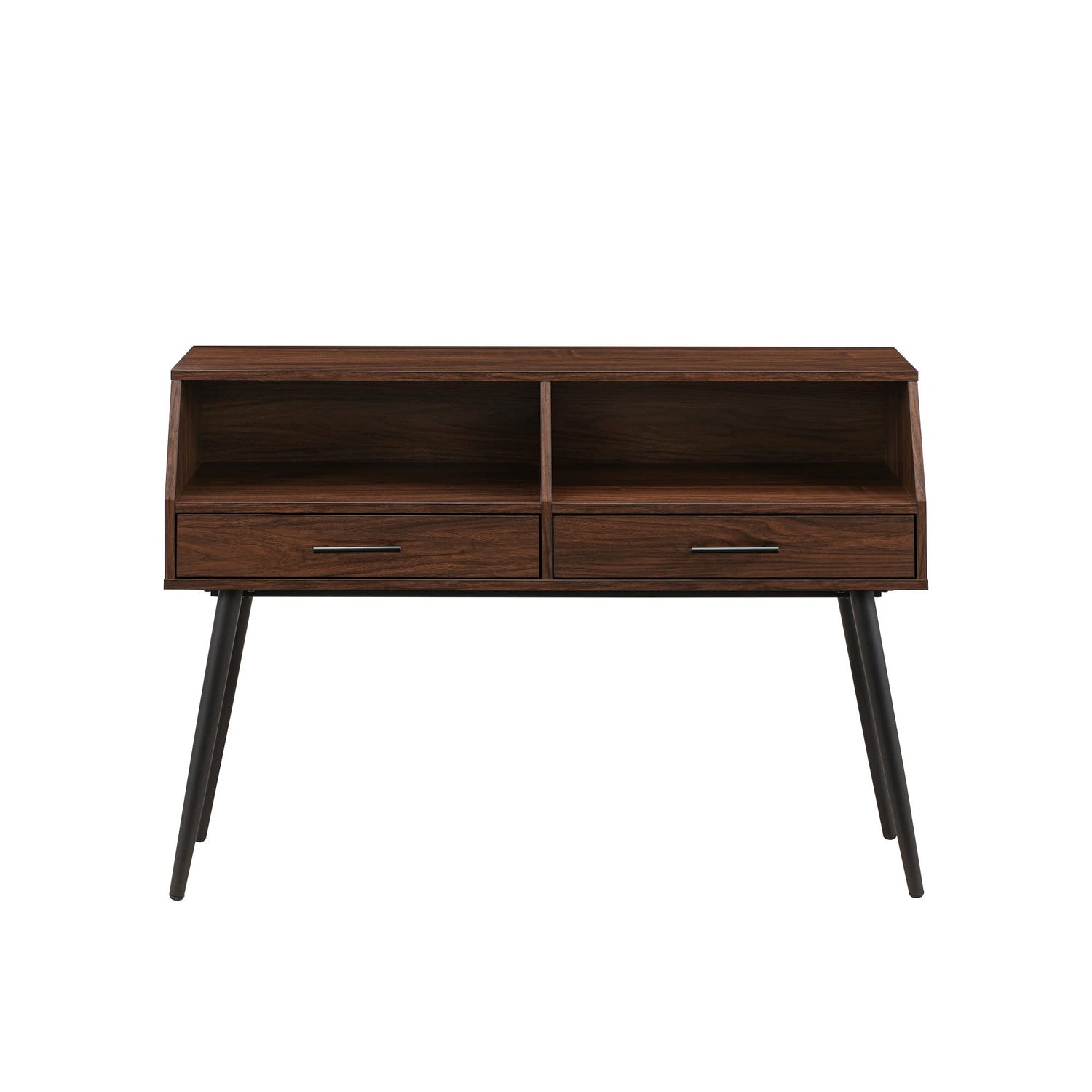 Walker Edison Perdita Minimalist Glass-Shelf Entry Table, 44 Inch, Dark Walnut
