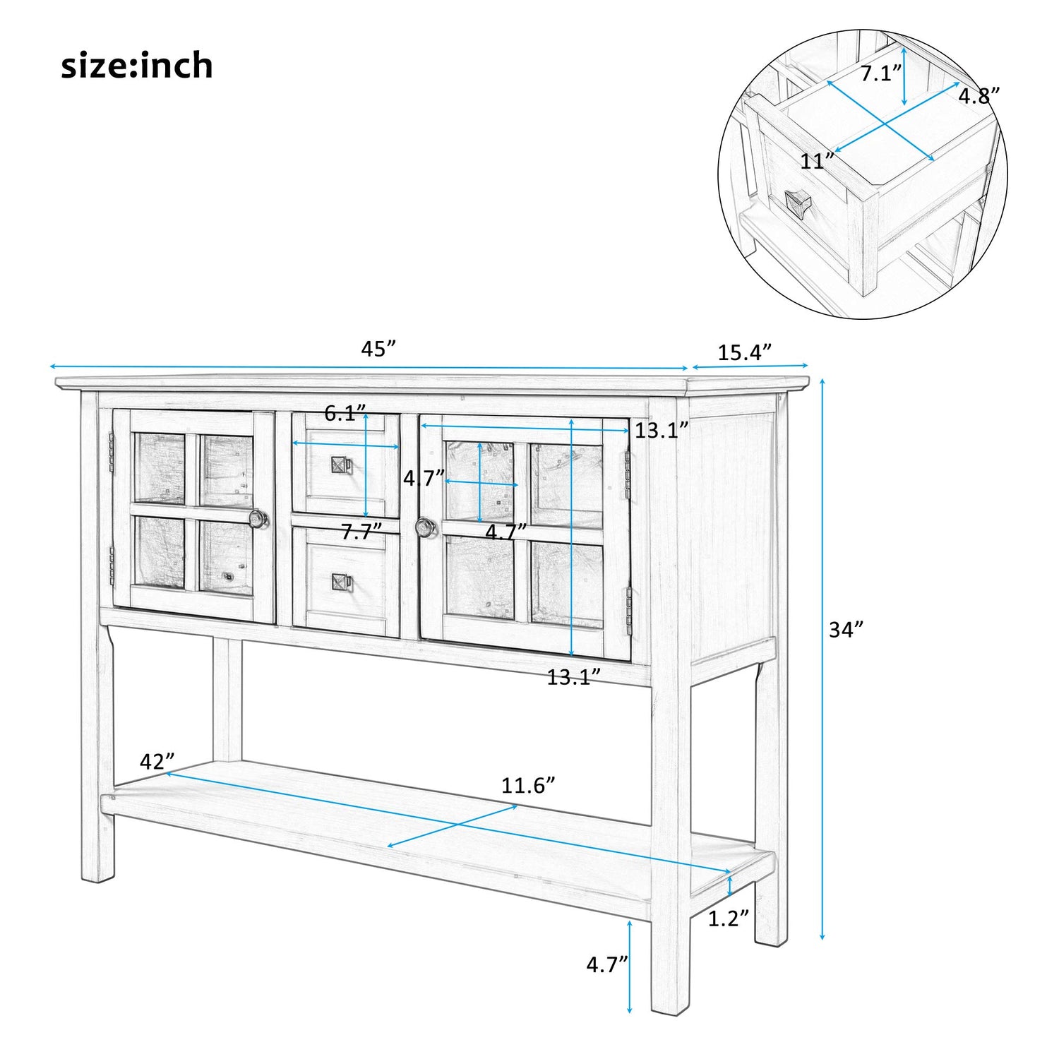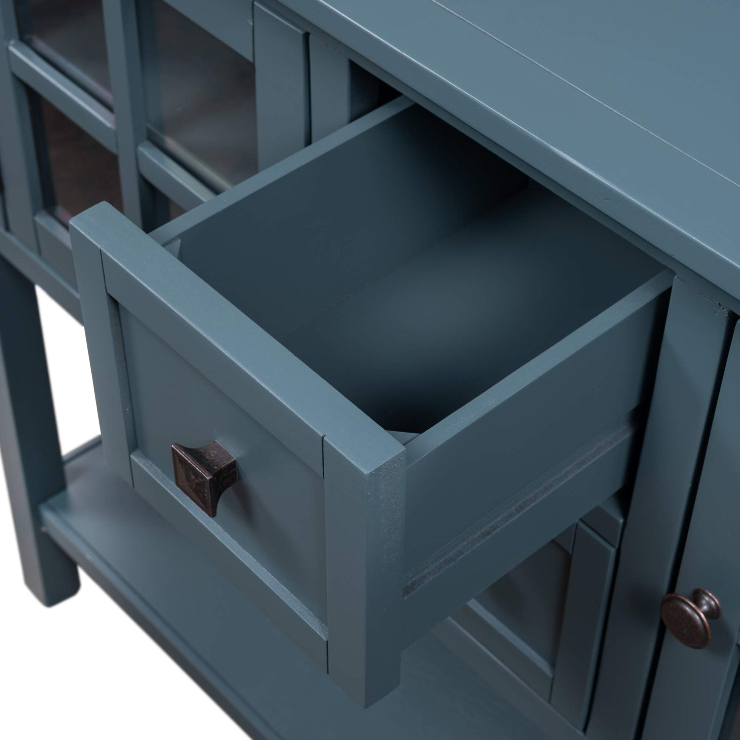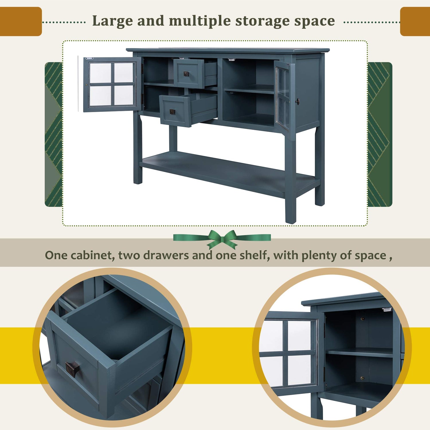 Wood Console Table Sofa Table, 45'' Modern Console Table Sofa Table for Living Room with 2 Drawers, 2 Cabinets and 1 Shelf,Easy to Assemble (Blue)