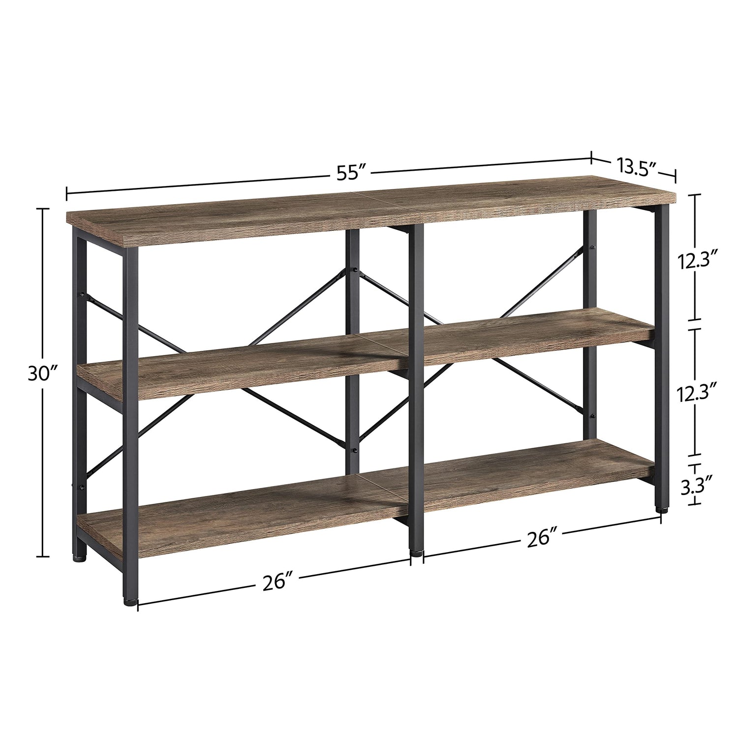 Yaheetech 55 Inch Console Table, 3 Tier Hallway Table with Storage Shelves, Industrial Sofa Table Narrow Long with Metal Frame, for Living Room, Couch, Entryway, Taupe Wood